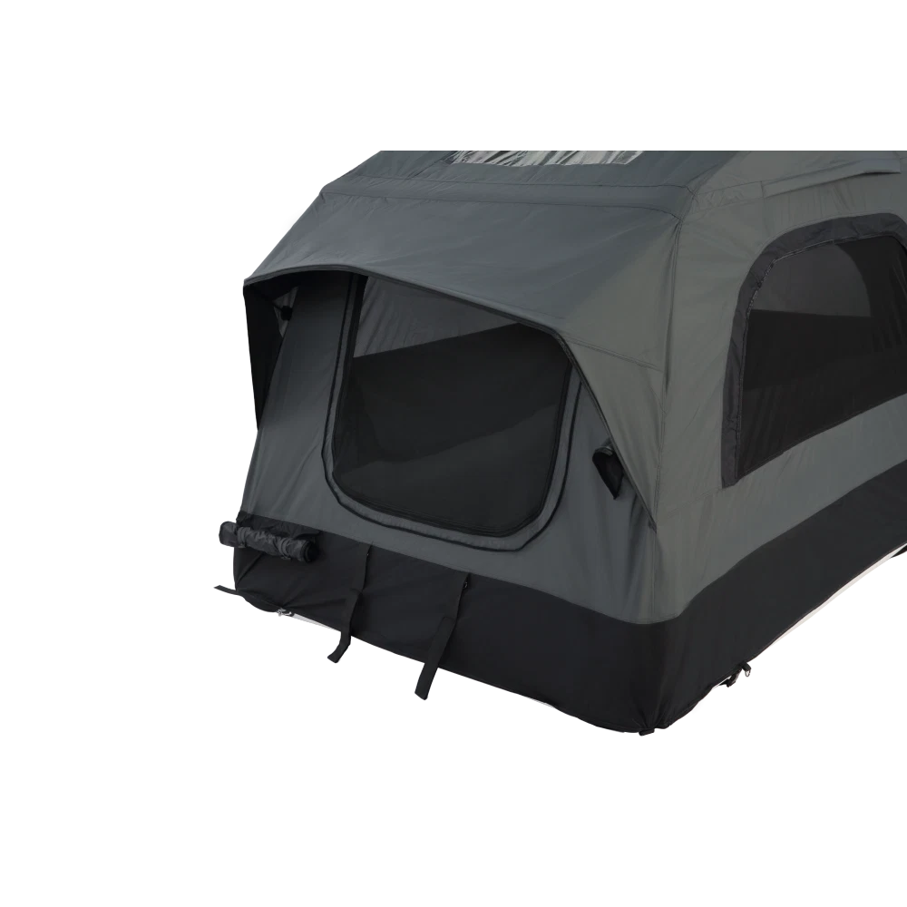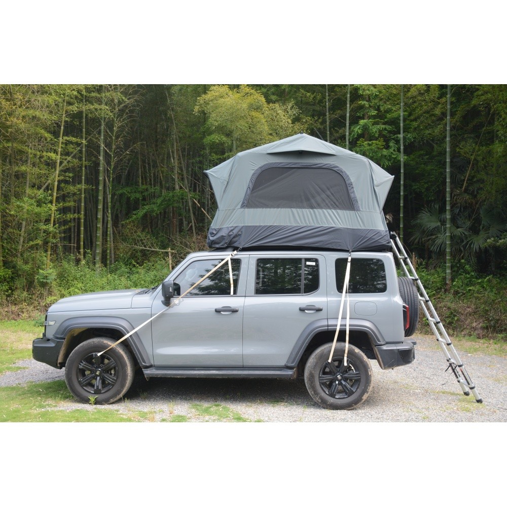 Fabric: 300D elastic yarn cloth with a cotton-like hand feel—closer to cotton than traditional Oxford cloth, yet mold-resistant and waterproof up to PU8000+. It also resists wrinkles better than Oxford. Panoramic skylight: Made of TPU polyether, which costs more than polyester. Compared with PVC, TPU remains flexible in low temperatures, resists creasing, and offers superior light transmission and durability. Base: 500 g/m² PVC knife-coated fabric, waterproof up to PU10000+. Highly scratch- and abrasion-resistant, unlike the Oxford cloth many competitors use, which can be punctured by stones and offers poorer waterproofing. Zippers: SBS premium brand—remain smooth after tens of thousands of uses. Mesh: N300 “diamond” mesh—far more abrasion-resistant than standard B3 mesh; won’t snag or fray, and resists claw damage from pets. 15 cm thick air-beam base: Doubles as a mattress and can even be used on water, supporting loads over 250 kg. No extra roof-rack accessories required—fits standard crossbars. Two people can easily lift the tent onto the roof. Rapid setup: With the electric pump, inflation and full setup take under 5 minutes; with a manual pump, installation is complete within 10 minutes. 300D Oxford fabric Waterproof PU3000mm, UPF50+ provides excellent sunshade and UV resistance. Good hand feel, not easy to wrinkle. 15 cm thick brushed bottom plate A 15cm thick brushed base plate, which can be used directly as a mattress or for use on water surfaces, with a load-bearing capacity of over 250kg. The aluminum base plate telescoping ladder, and roof create a three-point support system for enhanced wind resistance. When folded, the tent can be secured with Velcro straps to prevent it from being lifted by the wind. Enhanced Comfort Inside Enjoy greater comfort during outdoor camping or overnight stays. The tent features multiple ventilation points, breathable mesh window, and a thick, non-deforming foam mattress for added comfort. Inflatable Camping Tents with Hand Pump,Rooftop Inflatable Tent - Gray+Black Color Gray+Black Product Dimensions 86.61'' W x 57.09'' D x 52.36'' H Recommended Uses For Product outdoor 、Camping Fabric 300D Oxford Unit Count 1 set Person 1-3 Carton size 1set: 31.50'' W x 18.90'' D x 14.96'' H Item Weight 66.14 Pounds Country of Origin China