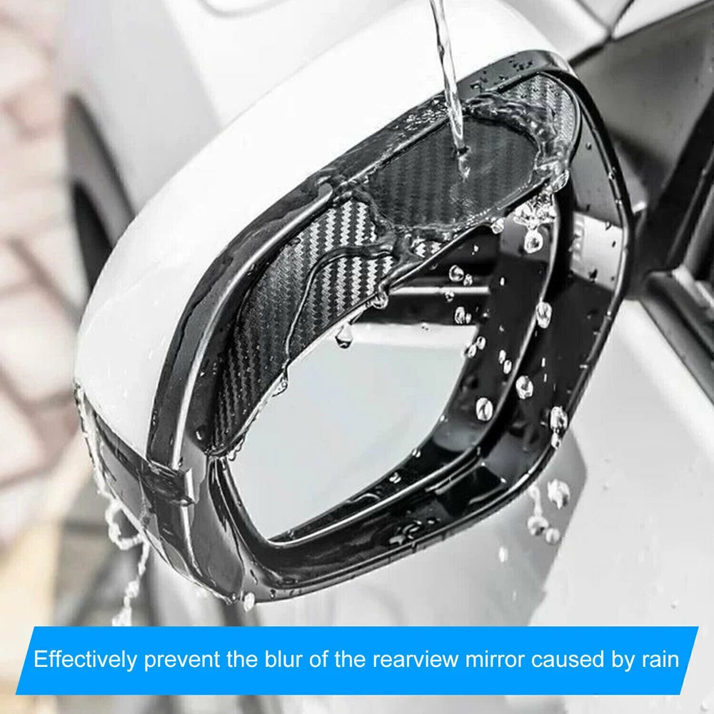 2 Piece Pack Carbon Fiber Black Mirror Rain Visor Guard For Car Auto Accessories