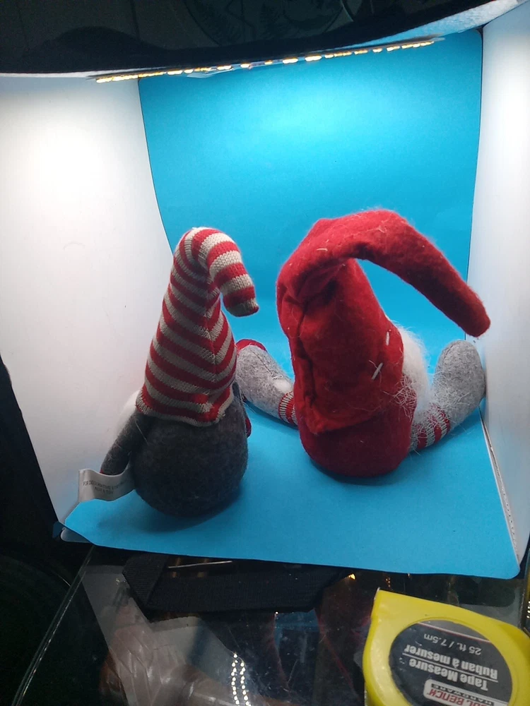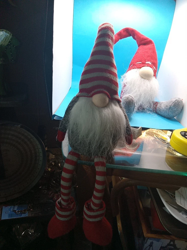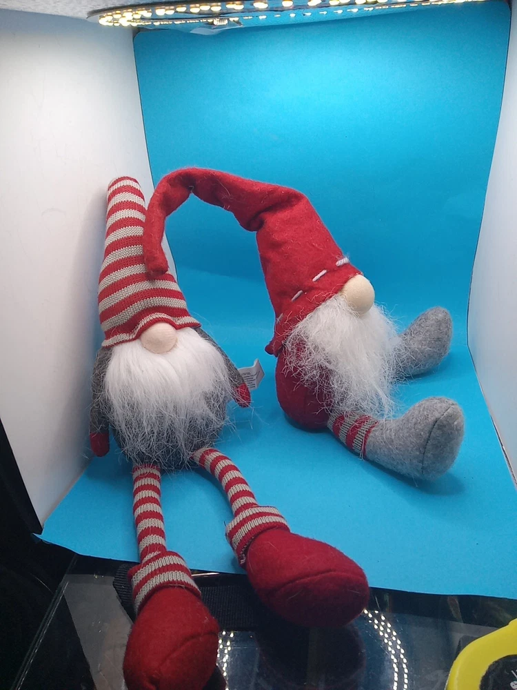 Add some festive charm to your home with these adorable plush and felt Christmas gnomes. With one 14" shelf sitter and one 9" sitter, these figurines are perfect for adding some holiday spirit to your decor. The soft plush finish and delightful gnome character make these collectibles a must-have for the holiday season. Celebrate Christmas with these charming figurines that are sure to bring a smile to your face. Please see my other auctions for my other thrift store finds.