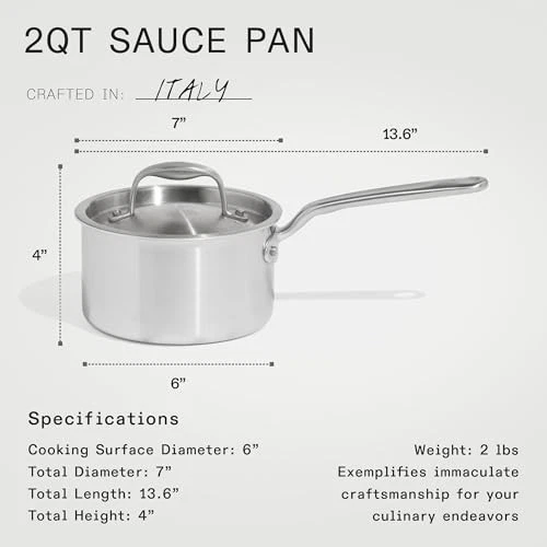 Return Policy Fast Delivery Trusted seller Cookware - 2 QT CeramiClad Non Stick Saucepan with Lid - 5-Ply Stainless Clad with Stay-Cool Handle - Professional Cookware - Crafted in Italy - Induction Compatible Product Description Total Length: 13.6” | Total Diameter: 7” |Total Height: 4” | Depth: 4” | Cooking Surface Diameter: 6” High-Performance Ceramic Coating - Our Super-Durable Ceramic Coating Is Free Of PFAS, PTFE, PFOA, Lead, And Cadmium Premium 5-Ply, Cladded Construction - Each Pan Is Crafted From 5 Layers Of Metal, Giving You Maximum Heat Control, Responsiveness, And Even Cooking Capabilities Oven Safe - Safe for oven use up to 550F Induction Compatible - Compatible with all stovetops (including induction), each piece is an incredibly versatile addition to your cookware arsenal Italy - Proudly crafted by artisans in Italy from premium metals to ensure you receive the highest-quality cookware Shipping Returns Payment Shipping Shipping is FREE to all addresses other than APO/PO boxes in the lower 48 states. All our stock ships from US-based warehouses. Shipped via USPS or UPS (depending on location and package weight) Unless stated otherwise, all orders will ship within 24-72 hours of your payment being processed. Check our feedback to see the great reviews of FAST shipping we offer. Returns Seller does not accept returns Payment We currently accept payment via eBay managed payments only. Once payment is cleared, we will dispatch your shipment within 1-3 business days. Please refer to the "Shipping" tab for more information regarding shipping speed to your destination.