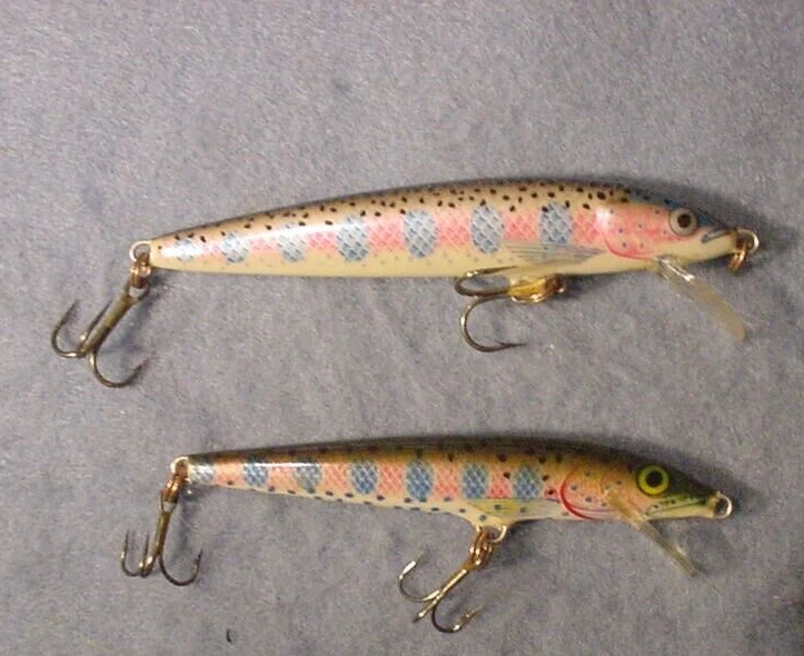 Lot of 2 ~Rapala 1-Husky Jerk 4" Body HJ10 RT & 1-Original Floating 3 1/2" Body F09 RT Good Condition. Please see Photos. (What you see is what you get) 1--HJ10 RT Rainbow Trout Swimming Depth: 4' to 8 Weight: 3/8 oz. 1--F09 RT Rainbow Trout Swimming Depth: 3' to 5 Weight: 3/16 oz. ⚠ WARNING: This product can expose you to chemicals including nickel and lead, which are known to the State of California to cause cancer and birth defects or other reproductive harm. For more information, visit www.P65Warnings.ca.gov We do combine Shipping & Handling charges (combining Shipping & Handling charges for U.S. shipments) -- We use the heaviest item at full S&H and then discount each additional item's S&H charge by 50 percent and add it to the first S&H charge. (You can also just send us a message for a quote) (combining Shipping & Handling charges for international shipments) We combine shipping and handling by totaling all of the item weights. Item weight: 2 ounces Our maximum value per package for international locations is $50.00 with the exception of the U.K., and Germany. Our maximum value per package for the U.K. and Germany is $25.00 International bidders must pay by PayPal. shipping will be calculated at the end of auction and added to the invoice International Buyers – Please Note: Import duties, taxes and charges are not included in the item price or shipping charges. These charges are the buyer's responsibility. Please check with your country's customs office to determine what these additional costs will be prior to bidding/buying. These charges are normally collected by the delivering freight (shipping) company or when you pick the item up – do not confuse them for additional shipping charges. We do not mark merchandise values below value or mark items as "gifts" - US and International government regulations prohibit such behavior. Packages over $25.00 in value can take extra time to clear some countries customs offices. This is due to the extra process of collecting duties and taxes on certain items. Please understand your countries customs process and understand that this can increase the delivery time from what would normally take 2 to 3 weeks may take 5 to 6 weeks. Also, during the Christmas season the delivery time’s increase due to the volume of freight going thru the countries customs offices. THANKS FOR THE INTEREST!!