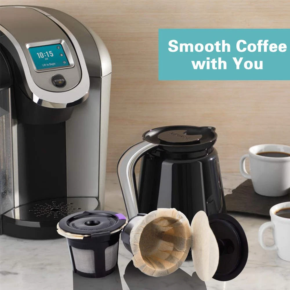 IDEAL PARTNER FOR MORNING COFFEE: Reusable k cup and coffee filters are specially designed to work with Keurg 2.0 & 1.0 coffee maker. Our k cup filters disposable are unbleached and degradable to help reduce plastic impact. Food grade and BPA-free coffee pods are no chemical residue EXCEPTIONAL PERFORMANCE: Say goodbye to sediment-- Made of thinner, natural unbleached, recyclable paper that holds its shape, soaks coffee grinds fully, evenly, traps all the grounds and most of the coffee's natural oils and then keeps better flow through but won't tear easily. No chemical residue, no harm to body EASY AND SAVE TIME TO USE: Simply insert paper filters in reusable k cup, tuck coffee filters with tops under hinge, fill with coffee and brew! All you have to do is simply flip the keurig and discard the disposable coffee filters when finished. Time saving and enjoy mellow coffee at the hurried morning MAKE CLEANUP A BREEZE: 2 refillable k pods can reuse many times. It is inevitable the coffee left in the gap of capsules are difficult to clean completely. So we prepare matched 200 count coffee filters to solve the problem. Unlike another filters, our k cup filter liners with lid will be easier to clean and no any mess ground on coffee and top of coffee. No mess, no silting filter mesh,just remove and toss out the disposable filter ECONOMIC AND PLANET SAFE: Our paper filters will help you minimize expenditures, allowing you to get more out of your blend purchases, save up to 80% over prepackaged coffee pack and you get premium quality coffee every time, all the while helping you remain sustainability, too! Now you can enjoy your everyday's coffee without feeling guilty about planet