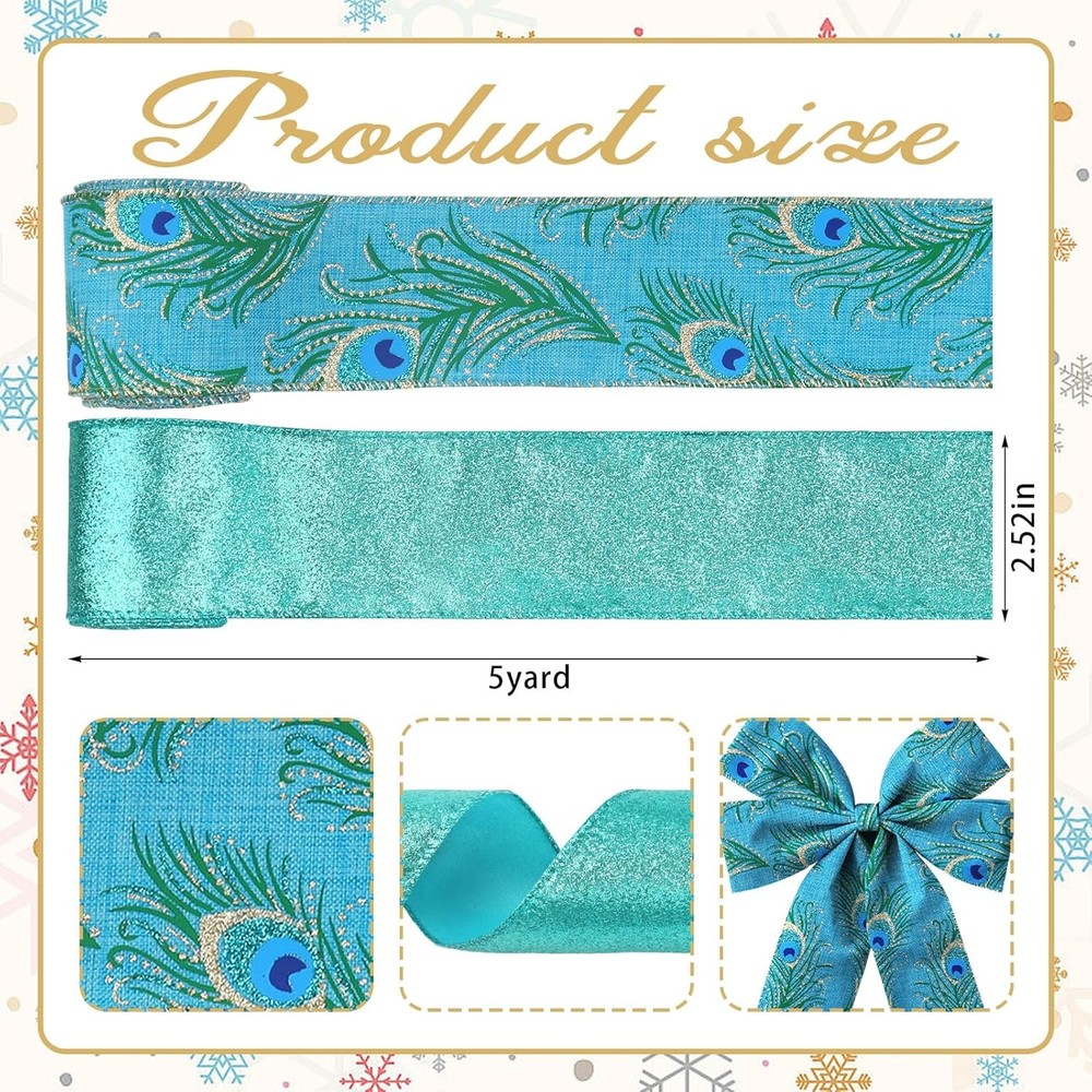 2 Rolls Peacock Ribbon for Wreath Bows Wrapping Gifts, Glitter Blue style3 Product Details Color: style3 Material: Polyester Brand: Glodecart Product Dimensions: 360"L x 2.5"W Style: Modern Occasion: Christmas, Birthday Fabric Type: Polyester Manufacturer: Hying Number of Items: 2 Unit Count: 30.0 Feet Item Weight: 0.317 ounces 【Material】Glitter Christmas Winter Wired ribbon is made of high quality polyester fiber, the Christmas ribbon's color is not easy to fade. It has metal wires on both sides, so it's easy to set into the desired shape and maintain the shape well. 【Design】The Winter Christmas Theme ribbon are composed of Glitter Blue Green Ribbon and Peacock Feather Blue ribbons. This Holiday Festive ribbon is full of the joyful atmosphere and can meet the needs of Christmas decoration and wrapping needs. 【Christmas theme Ribbon size】2 Roll, 2.48 inches wide and each 15 feet (5 Yards) long. Long enough to satisfy your different uses; you can cut it into any size you want according to your actual needs, such as wrapping Christmas gifts. 【Use Widely】Decorate your Christmas or birthday gift box for adding a special touch, and add more creative decorations to your Family Christmas party. 【Excellent after-sales service】We attach great importance to the buyer’s shopping experience. If you find any problems with our items, please feel free to contact us, we will solve it within 24 hours. Glodecart 2 Rolls Christmas Ribbon for Wreath Bows Wrapping Gifts, Glitter Blue Green Peacock Ribbon for Gift Wrapping Party Supplies Decoration DIY Crafts 2.5" X 10 Yard, Wired Winter Wreaths Ribbon Package Including: 2 Roll x Christmas Decoration Ribbon. Material: Glitter polyester and iron wireColor: As picture showsWidth: 2.5 inchesTotal length: 10 yards. Features:Enrich your Winter Christmas wreaths, garland or wrapping a gift; And also can decorate your gift box for adding a special touch, and Add more creative decorations to your XMAS Christmas party. Tips: 1. Please be reminded that due to lighting effects, monitor's brightness contrast settings, etc, there could be some slight differences in the color tone of the website's photo and the actual item. 2. Item measured by hand, it could be a little different.