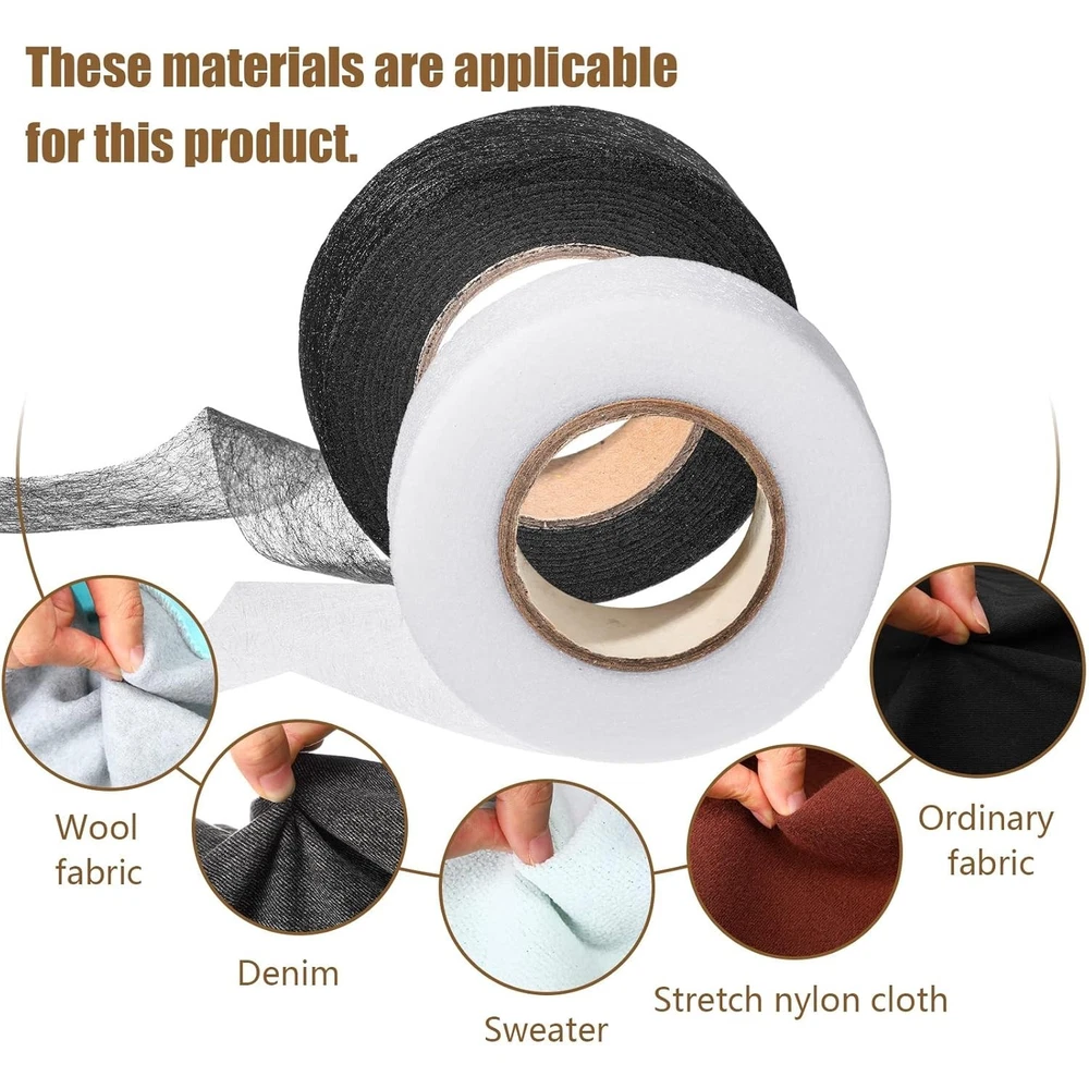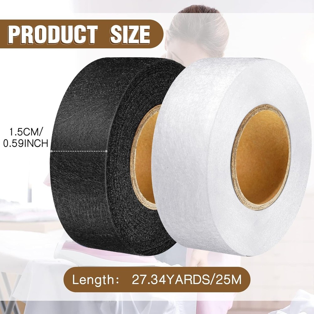 2 Rolls Hemming Tape Fabric Adhesive Hem Iron on No-Sew Hemming Tape for Pants Each 1/2 Inch Black, White Fabric fusing tape:hem tape width is 1/2 inch, length is 27 yards, 2 rolls of hem iron-on tapes, good for hems, no sew pillow cases, double backing ribbons and curtains, sufficient length for your daily use and needs Easy to Apply: press the clothes flat, cut a piece of tape and place it at the seam, wet the surface of the clothes, and then place the iron on top for about 10 seconds; Move the iron back and forth; The temperature of the iron should be above 150 degrees Celsius Time Saving and Wear Resistant: the adhesive quality is good; The tape adheres securely to fabric, creating a strong, long-lasting bond without the need for stitching, hem tape makes strong and reliable work to take place of stitches in most crafts and repairs, resulting wear resistant stronger bond Sturdy seal: hem iron-on tape help seal cloth tight, the hem is still holding strong after several washes and the fabric can be washed or dry cleaned Normal application: fabric fusible bonding web tape is regular weight and can be applied for hemming broken of cloths, fabric arts and crafts, but cannot be applied to surface that is too smooth or sticky