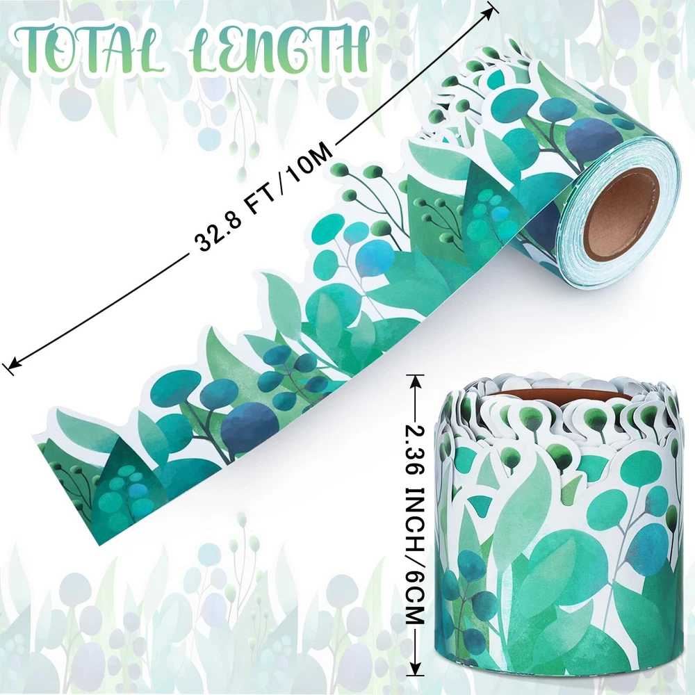 2 Rolls Scalloped Bulletin Board Borders - Eucalyptus Die-Cut Border Trim Bulletin Board Classroom Bulletin - 65.6 Feet Greenery Plant Borders Classroom Bulletin for School Classroom Offices 8 Rolls Scalloped Bulletin Board Borders Liven up your classroom with this fun and colorful border decoration! Create a fresh new look for bulletin boards, windows, walls, and classroom projects; mix and match with classroom-themed coordinating products. A variety of designs meet the versatile decoration style, and the printing is bright and clear. No matter what the scene is, you can find a suitable decorative bulletin board frame. You can use them almost anywhere, such as creating backgrounds for photo frames, making DIY accessories, and can also be cut to the desired size to help you make crafts; Great gift for friends and more. Greenery Classroom Decor: The Boho Bulletin Board Borders has 2 rolls of greenery plant patterns and can also be used as a suitable choice for the border of the green board classroom bulletin board; Students will love that the boho style classroom decorated with green color bulletin boards will transform your space into a beautiful work of wall art. Leaf Bulletin Board Borde: Borders classroom bulletin trim measures approx length 32.8ft/10m, width 2.3in/5.8cm, total length 65.6ft.To create a unique decor style and leave you with priceless memories, you can select classroom themes decoration sets and cut it into various shapes and sizes based on your creativity and imagination. High-Quality Material: These greenery bulletin board borders are classroom must haves made of high-quality coated bulletin board paper, not easy to break and deform, thick and durable, the classroom decor bulletin board borders can be easily cut into any length to decorate different places Eucalyptus Die-Cut Border Trim Design: With the help of this vibrant and amusing bulletin board decorations, liven up your classroom!Give walls, windows, school projects, and Eucalyptus Die-Cut Bulletin Board Borders a completely new appearance. It won't just brighten up your chalkboard or bulletin board;It will also encourage students to be more active. Wide Application: This scalloped border decoration is suitable for decorating classrooms, schools, offices, libraries, study rooms and wall notice boards. The bulletin board scalloped borders supplies can be attached to the edges of whiteboards, windows, blackboards, doors, cabinets, notebooks, etc. as eucalyptus classroom decor in schools, classrooms, or homeschooling. Shipping from the USA All of our products are shipped from the USA, ensuring quick delivery to your destination. Payment We offer the following payment methods: PayPal, credit card, bank transfer, and eBay's secure payment system. Free Shipping & Free Returns Shipping within the USA is FREE. Additionally, any return is absolutely free for you. Risk-Free Purchase You have the option to return an item within 30 days without any justification. We cover the return shipping costs! Fast Shipping We ship immediately upon receipt of payment. Generally, the package is delivered within 2-3 days in the USA. If it takes longer, we will contact you. Quality and Costs Made in Europe, USA, China No customs fees or additional charges Total satisfaction guarantee Invoice with declared VAT available upon request in .pdf format Feedback Your feedback is very important to us. After you pay for your purchase, you will automatically receive positive feedback from us.