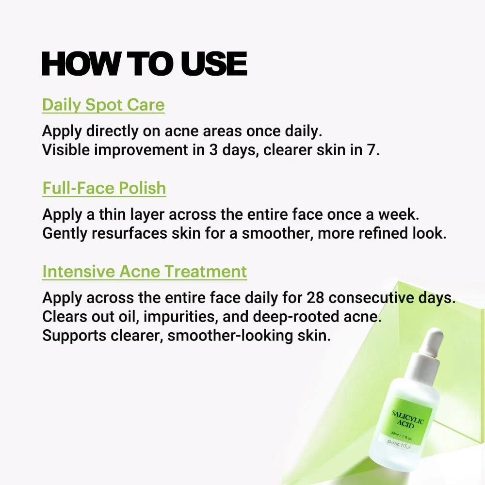 Free eBay listing template designed by dewiso.com 2% Salicylic Acid (BHA) Serum for Acne & Blackheads - Unclogs Pores, Oil Control, Sensitive-Skin Safe, Fragrance-Free,1 fl.oz FREE AND FAST SHIPPING! About this item Unclogs pores & clears breakouts – 2% Salicylic Acid penetrates deeply to dissolve oil and impurities, reducing blackheads, whiteheads, and blemishes. Visible skin renewal in 7 days – Improves the look of pores, reduces redness, and smooths rough texture with consistent use. Clearer skin in 28 days – Continuous application helps eliminate stubborn breakouts for long-term clarity. Gentle for sensitive skin – Enriched with Witch Hazel and soothing hydrators, balancing oil control while calming irritation. Targets Face & Back Acne – Effective for adult acne, teen breakouts, and stubborn back acne. Safe, clean formula – Fragrance-free, paraben-free, cruelty-free, produced in a GMP-certified facility. Product We offer a 30-Day Return Policy on items which you are not completely satisfied with. You have the option for a full-refund or an exchange of the item. No returns are available on items shipped outside of the US . Shipping We offer Free Shipping to the US and ship within 2 business days of payment, usually sooner. We use UPS express shipping. That's why your products are usually delivered within 3 days . Contact We try our very best to make sure every customer is completely satisfied. If there's a problem , message us! We're happy to help. 24/7 live chat available.