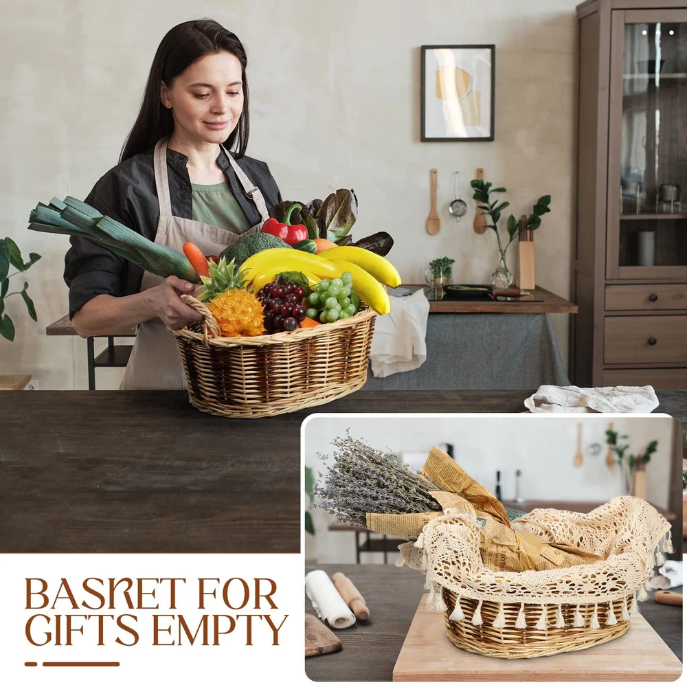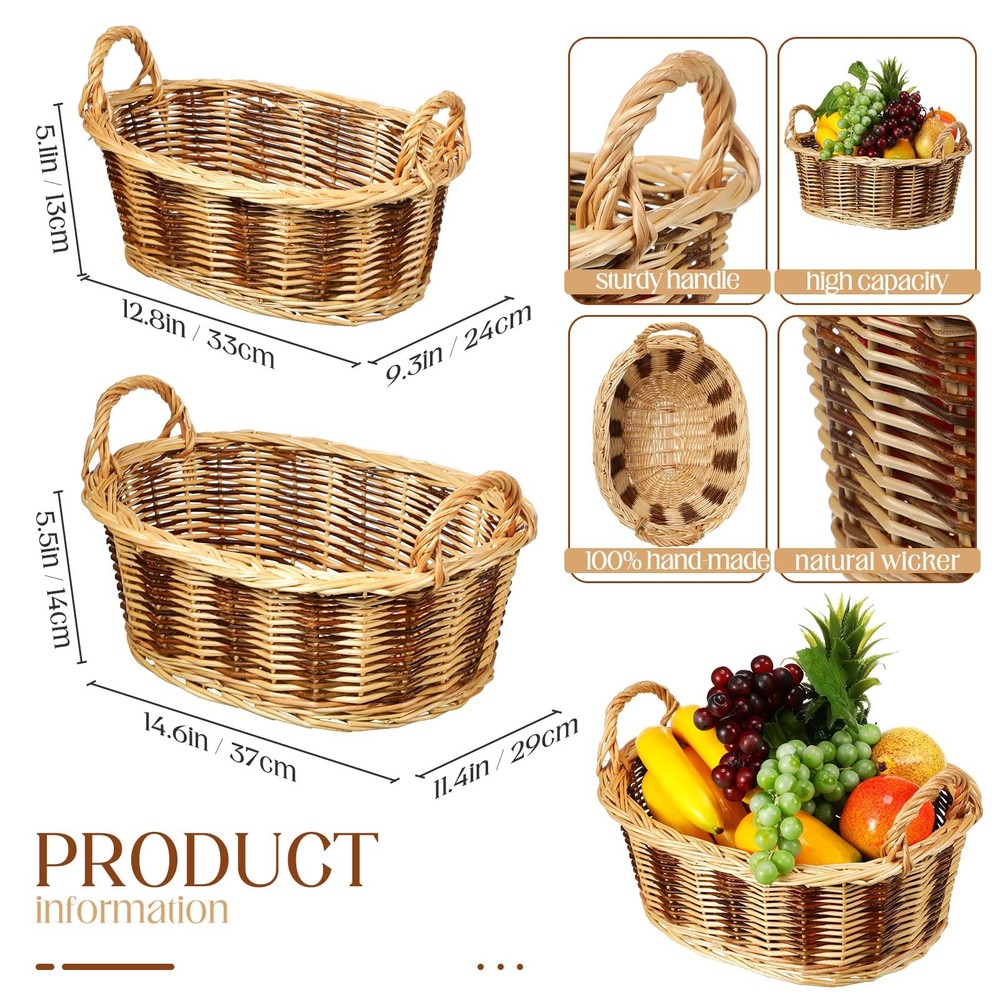Features: Considerate gift: Our empty gift basket kit supplies are nice for you to send to your friends, colleagues, family members, neighbors and so on, you can put wine, snacks, candies and so on inside, and then give it to them, can easily get favored by most adults and kids. Suitable occasion: The empty gift basket set is helpful to keep things clean and tidy, which can be applied to store bread, fruits, keys, glasses, snacks, cosmetics, etc., or use them to store some daily necessities, and can also be applied as nice decorations for parties, celebrations and festivals and more. Specifications: Material: woven wicker, plastic, kraft paper Color: as shown in pictures Size: Large gift basket: about 14.6 x 11.4 x 5.5 inches/ 37 x 29 x 14 cm Small gift basket: about 13 x 9.5 x 5.1 inches/ 33 x 24 x 13 cm Clear plastic bag: about 22.05 x 28.35 inches/ 56 x 72 cm Package includes: 2 x Woven wicker baskets 2 x Clear gift bags 4 x Pull bows 2 x Kraft card Notes: Manual measurement, please allow slight errors on size. The color may exist slight difference due to different screen display. Package Include: you will get 2 pieces of woven wicker baskets in 2 different size, 2 pieces clear cellophane bags, 4 pieces pull bows in 2 different colors and 2 pieces kraft cards, they can make a nice match with each other, sufficient quantity to easily meet your daily use and other requirements Reliable Material: each of our baskets for gifts empty is made of quality woven wicker, not easy to break or deform, light in weight for you to carry, the card is made of kraft paper, the transparent plastic bags and bows are made of plastic, long lasting and safe, you can use with confidence Easy to Use: you can lay the gift on a basket, write your wishes on a card and put it in the basket, put the basket in a bag and close it with a bow, you can use them to DIY gift box to your family, friends, colleagues and more, make your gift basket unique Suitable Size: the large gift basket empty to fill measures about 14.6 x 11.4 x 5.5 inches/ 37 x 29 x 14 cm, the size of the small wicker empty basket is about 13 x 9.5 x 5.1 inches/ 33 x 24 x 13 cm, easy to portability and storage, not very large to take up too much space, the clear cellophane bag measures 22.05 x 28.35 inches/ 56 x 72 cm, a large size that can cover the basket fully and makes it available for holding a lot of things Wide Application: our gift baskets empty kits have many uses, you can use them at many occasions, such as graduation gifts, anniversary gifts, holiday, wedding, housewarming, thanksgiving, Halloween and more, can go well with your events easily, you can also use food baskets for serving to hold fruits, snacks, candies, bread and a lot of things in your daily life, bringing a lot of convenience for your life