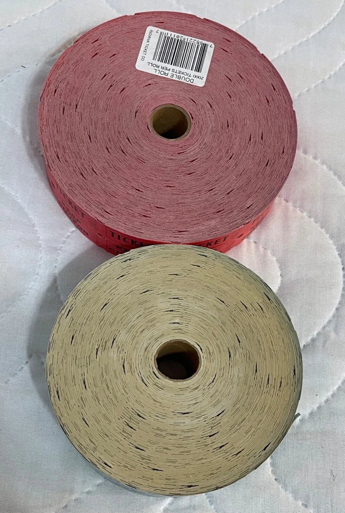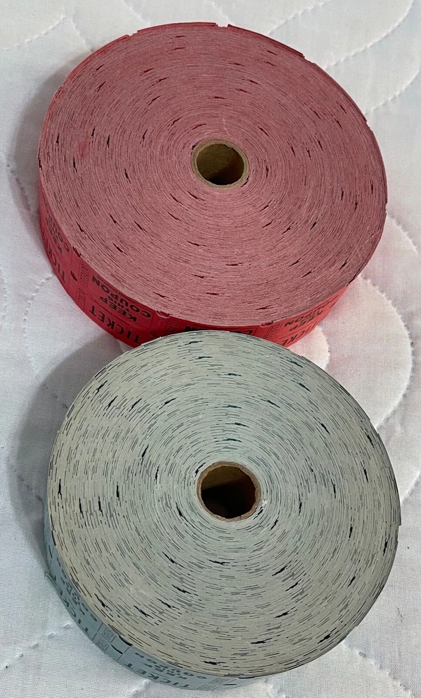 ~ We Do Offer Combined Shipping ~ For Your Consideration We Are Offering This 2 Single Numbered Ticket/Keep Coupon Double Rolls Raffle ~ Carnival ~ Halloween Two partial rolls of both blue & red ~ We used these for admission to our Haunted Attraction ~ Please ask questions ~ We will answer them to the best of our ability ~ Thanks for stopping by ~ Enjoy! Check out our other items ~ Be sure to add us to your favorites list ~ SHIPPING ~ We Recycle All Packaging & Shipping Boxes ~ Your Item May Arrive In Previously Used Packaging Materials Shipping Price Offered Is For The Contiguous U.S. Only ~ Extra Fees Will Apply To Alaska & Hawaii ~ -No Returns are accepted ~ Please feel free to contact us with any questions prior to bidding. Payment is due within 2 days of the end of the auction. -Paypal is the method of payment accepted. -We will ship within 3 business days of the receipt of payment. -This excludes weekends and holidays. -All items are from a smoke free environment. -We are always willing to entertain specific requests and