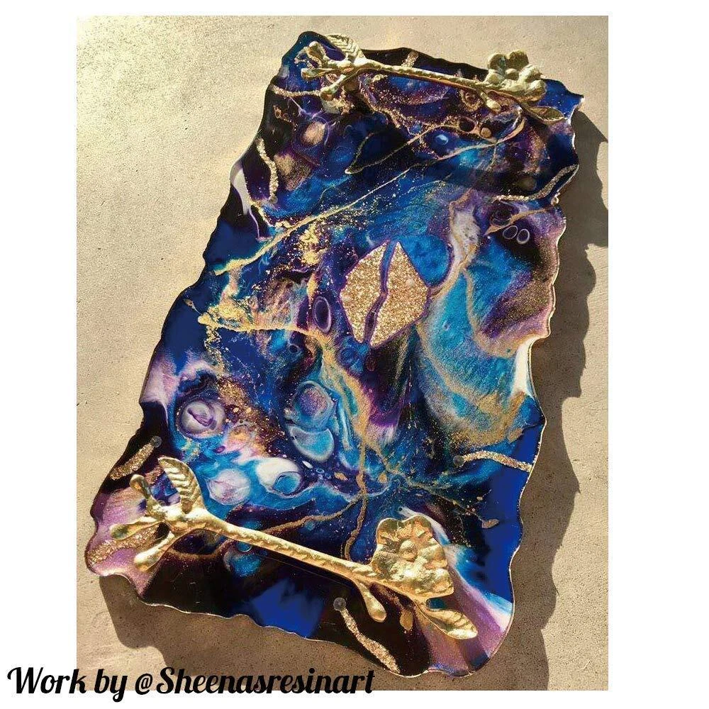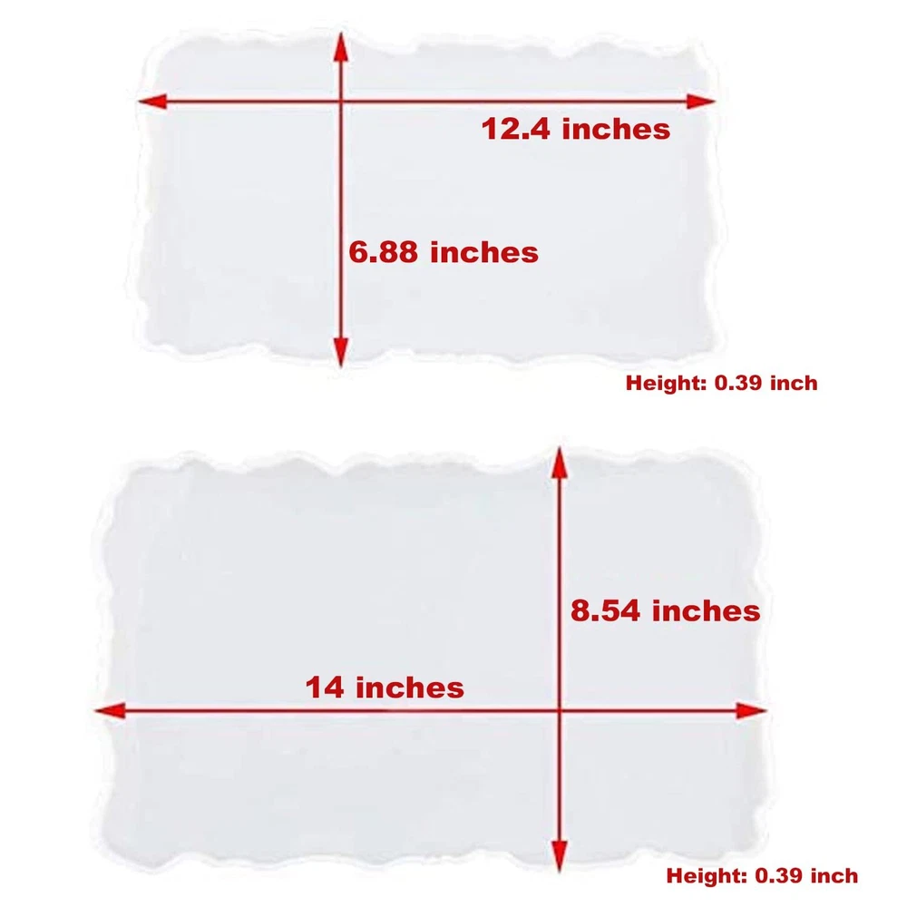 【Geode Tray Molds in Two Different Size】: Larger one (14 x 8.54 x 0.39 inch) holds about 600ml resin. Smaller one (12.4 x 6.88 x 0.39 inch) holds about 300ml resin. The large mold is a perfect size for a serving tray, the smaller mold holds a cup of coffee and a croissant with no problem. 【Premium Silicone Material】: Made of silicone with shiny surface, the finished products has a mirror effect. These resin casting molds are very flexible, easy to demold, reusable, easy to clean. 【Wide Range of Application】: The resin tray molds can be used to make fruit tray, agate pieces, resin art, crafts home decor etc. You can also make a 2 tier cake stand by drilling a hole in the middle of the trays and assemble with 2 tier hardware fittings. 【Creative DIY Project】: These silicone resin molds are compatible with most casting material such as epoxy resin, UV resin. You can add some resin pigment, resin dye to create personalized art craft projects in differnt ways. 【Ideal Gift】: Such a great gift for yourself or someone you care about. Using these silicone resin molds to make personalized geode agate pieces for your family, friends for unique Christmas gifts.