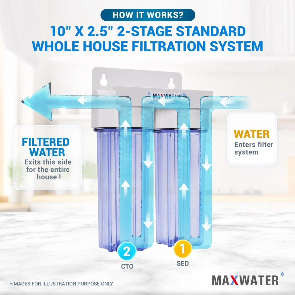 Clean and Safe Water: Our 10" 2 Stage Whole House Water Filter System is designed to effectively filter sediment, chlorine, and other contaminants from your water supply, providing you and your family with clean and safe water for drinking, cooking, and other household uses. Easy to Install: With a 3/4" inlet and a compact design, our water filter system is easy to install in your home, making it a convenient solution for providing clean water for your entire household. Durable and Reliable: It is made with high-quality materials that ensure durability and reliability, providing you with long lasting protection for your water supply. Cost-Effective Solution: By installing our 10" 2 Stage Whole House Water Filter System, you can save on bottled water and individual point-of-use filters. It provides a cost-effective solution for ensuring that your entire household has access to pure and safe water. With its two-stage filtration system, it also ensures that your plumbing and appliances are protected from sediment and other contaminants. Totally Dissolved Solids Note and Customer Services : This under sink water filter will not reduce the Totally Dissolved Solids of the incoming water. Instead, it keeps the healthy minerals in your water. If you are interested in a filter that filter out Totally Dissolved Solids, please consider a reverse osmosis systems.