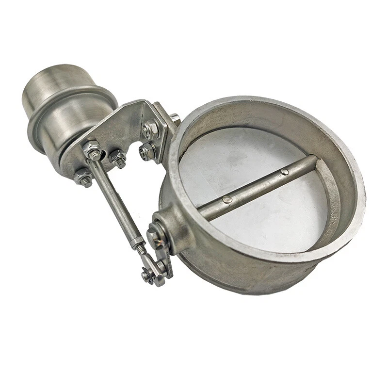 2in 51mm Universal Car Exhaust Control Valve Vacuum Activated Exhaust /Dump Closed Style -2 psi - 5.5 psi Specification: The valve is CLOSE at free condition. The pressure range: -2 psi - 5.5 psi. Inner diameter of this closed exhaust valve: approx.2 inches Connector size: about 6 mm/0.24 inches. Fits with automobile exhaust pipe whose diameter is 2" Features: 1. The main function of the exhaust valve is to stabilize the propulsion pressure of the turbocharger system to protect the engine and turbocharger. 2. Made of high‑quality stainless steel, hard and durable, and has a long service life. The high quality material can ensure maximum strength and durability for long lasting usage. 3. Universal for automobiles, and can be installed when the size is appropriate. The product is easy to install, but professional installation is strongly recommended. 4. Sophisticated production, high quality, more in line with your needs. Small, compact, easy to install, ready to use, more convenient, improving your shopping experience. 5. The valve is closed at free condition. Rod end bearing linked between actuator and gate lever.