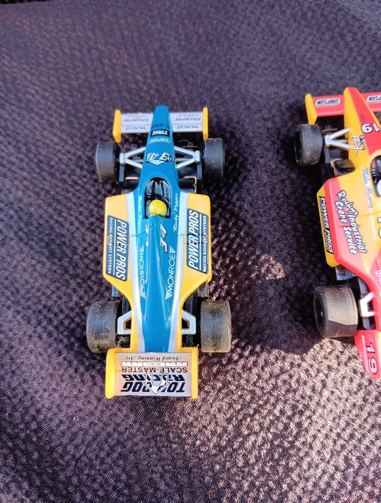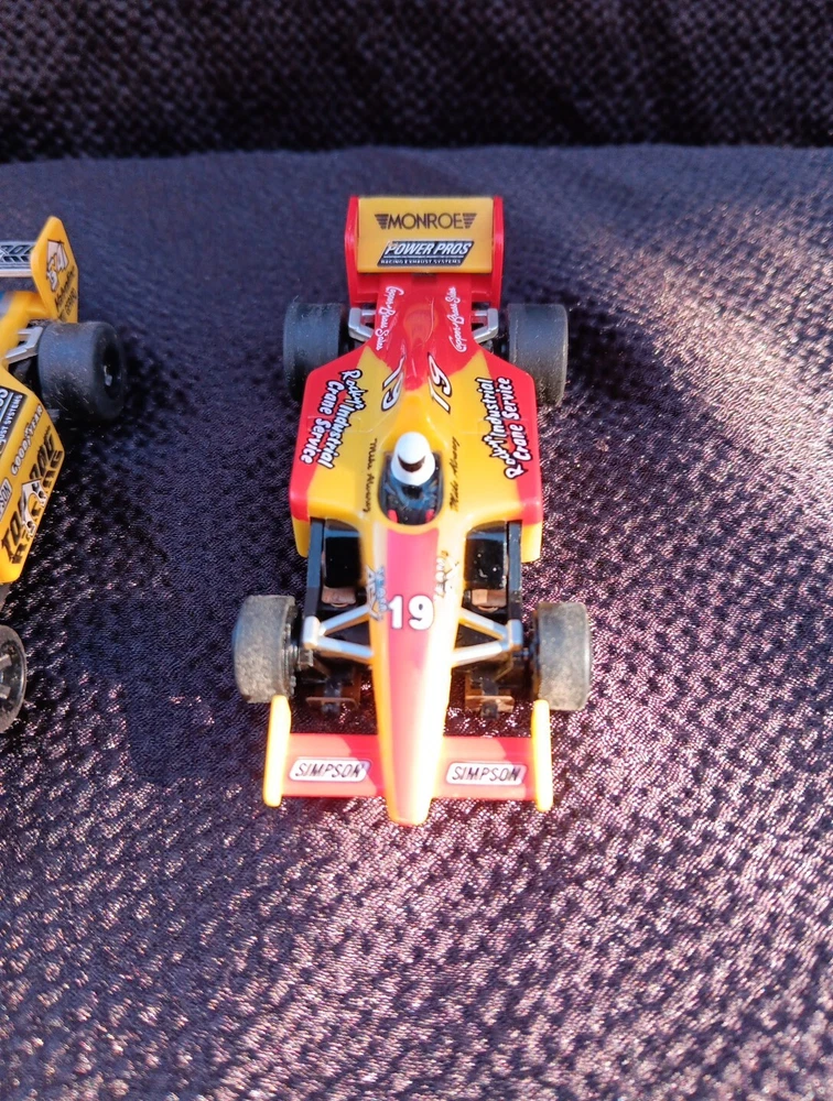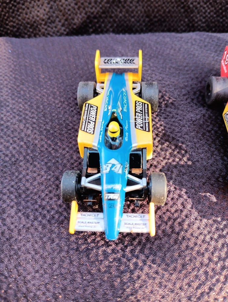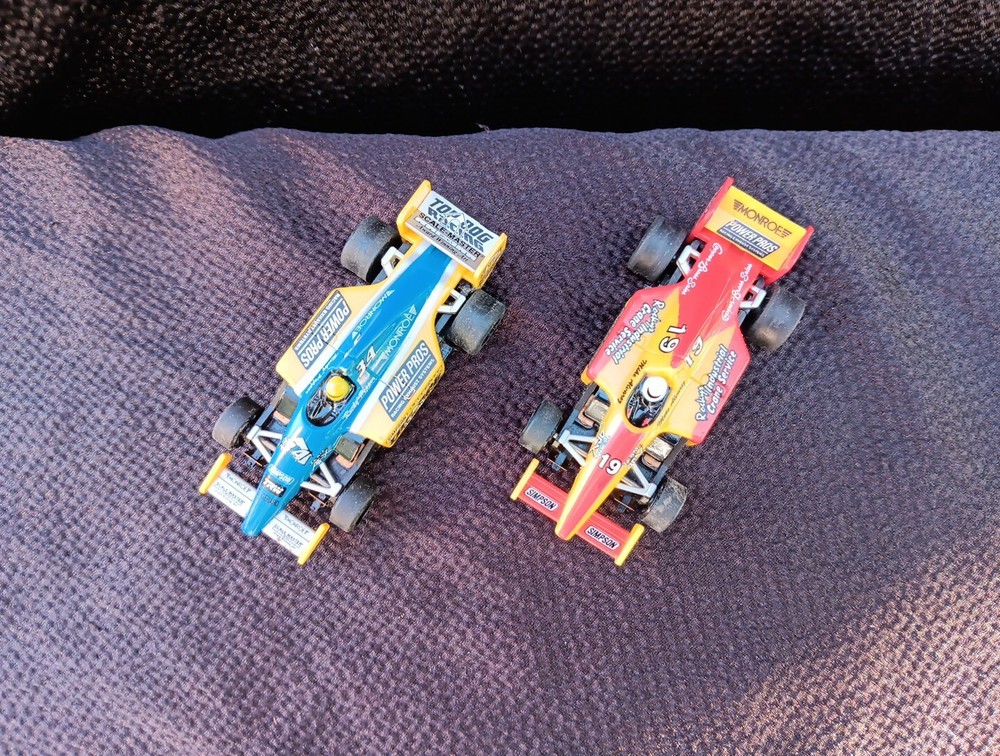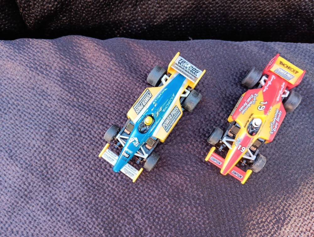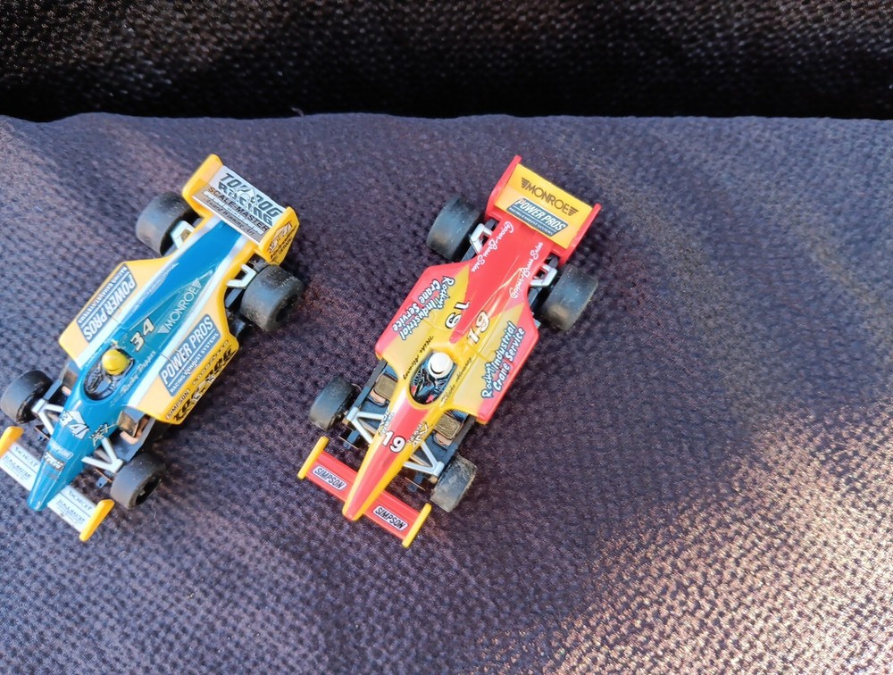 The product is a set of two TOMY AFX Super G+ Plus HO slot cars, specifically model numbers #19 and #34, designed to run on Tyco/Aurora tracks. These cars are original and came out of a set. SÈE PICTURES. Appear to have been run a little but with great care. Spoilers are present. Paint is good with hardly any signs of wear. I did not notice any broken or missing pieces. Motors turn freely. Price is for BOTH cars. Shipping INCLUDES insurance and tracking.