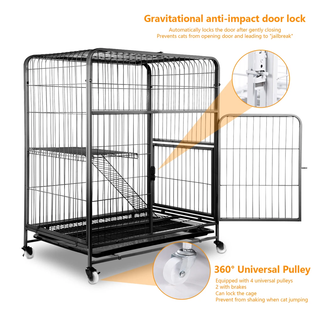 Store category Sign Up Now ! You may also like Product Description Bullet Points: Improved Pet Care: Featuring a three-door design, this cage is not only convenient for pets to enter and exit but also improves ease of use, simplifying your daily pet care routine Seamless Wheeled Mobility: With its bottom equipped with wheels, this indoor cat cage is easily moveable and adaptable to meet different scenarios, allowing for effortless relocation to any corner, both indoors and outdoors Sturdy Cat Home: Give your other pets a haven with this indoor cage made of solid iron material that promises stability and safety. Rabbits, kittens, and small dogs are secure in this sturdy structure Expansive Double-Decker Build: Double-layer design of this indoor cat cage, with built-in ladder and ample space, encourages climbing and play, meeting cats' natural instincts and promoting exercise and health Detachable Tray: Make maintaining your pet's clean and hygienic living environment a breeze with our cat cage's removable tray design. Effortlessly clean up and keep it tidy with this easy and easy-to-use feature, ensuring your pet's happiness and health Introducing our indoor cat cage, perfect for kittens with a three-door design and the ability to be easily moved to any corner, indoors or outdoors. Connects the upper and lower floors and includes a removable tray for easy cleaning. Keep your feline friend safe and happy. Specification: Product name: Cat Crate Product material: Iron Product color: Black Suitable for: Small dogs, kittens, rabbits and other pets Product size: about 95x53x76.5cm/37.4x20.87x30.12 inches Packaging size: about 92x10x81cm/36.22x3.94x31.89 inches Package weight: about 10.12kg/22.3lbs Application scenarios: Indoor and outdoor Packing List: 1 * Cat Cage 2 * Wheels 2 * Wheels with Brakes 1 * Ladder 1 * Tray Notes: 1. Due to different lighting and screen settings, the item color may be slightly different from the picture. 2. Due to different manual measurements, please allow a 1-2cm difference in size. Payment Delivery details Terms of sales About us Feedback & DSRs Payment Before you palce an order, please kindly make sure that you have a paypal account. We accept PAYPAL payment only. Payment should be completed within 2 days after auction closed, or unpaid dispute will be filed for an closing auction. An unpaid case will be filled after 4 days. Delivery details We ship to your eBay address. Each package will be shipped to US by UPS Regular Parcel with tracking number. Please check your shipping address carefully before checkout, it can't be changed if order completed. All items will be shipped within 1-2 business day upon receipt of payment.Orders placed on weekend will be shipped within 3 days. If you do not receive your item in 7-10 business days.please contact us immediately for further assistance. We will be responsible for any damages or losses incurred in the shipping process. About us We maintain high standards of excellence FIVE STAR and strive for 100% customer satisfaction! Positive Feedback is very important to us. We hope that you contact us immediately Before you give us neutral or negative feedback, so that we can satisfactorily address your concerns. We promise to offer the lowest price and high quality produce. Our working time: From Monday to Friday(9:30 am to 18:00pm), we don't working on holidays ,hope you can understand and know that , thank you. Please always talk to us via ebay Message. We appreciate your business and look forward to growing our e-Bay sales with satisfied customers. Feedback Contact us If you have any questions, please feel free to contact with us by ebay Message during our business hours ( 9:30a.m. to 5:30 p.m.), or email us through eBay, we will try our best to help you to resolve it. For any presale or after-sale questions,please do feel free to email us! Due to the time difference, each email will be replied within 1 working day,and weekend will be delayed a bit. Feedback