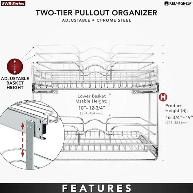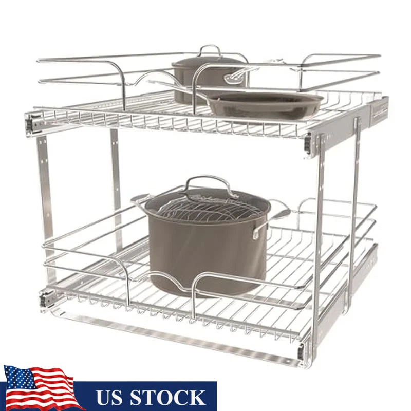 You may also like Adjustable Magnetic Drapery Rod 16-28in No Tools Installation Multi-Use Steel 15.18 USD Free shipping Heavy Duty Cotton Canvas Laundry Bag Drawstring Closure Ideal Camping RV Dorms 19.57 USD Free shipping Soft Strong Premium Toilet Paper 24 Mega Rolls 380 Sheets 2-Ply Septic Safe New 25.92 USD Free shipping 8-inch Wood & Poly Shrub Leaf Rake Eucalyptus Handle Lawn and Garden Cleaning 14.97 USD Free shipping Woodland Camo Rip-Stop Tarp 12ft x 16ft Waterproof Heavy-Duty Camping Gear Cover 45.49 USD Free shipping Enameled Cast Iron Griddle Nonstick Kitchen Cooking Pan Heat Distribution New 28.15 USD Free shipping Galvanized Steel Locking Lid Storage Can 6-Gallon Containers Weatherproof Garden 30.97 USD Free shipping Stainless Steel BBQ Fork Extra Long Handle Dishwasher Safe Grilling Tools New 11.34 USD Free shipping 10 Gallon Rectangular Trash Can Easy Clean Plastic Wastebasket Home Office New 18.96 USD Free shipping Clear Suction Soap Dish Self-Draining Easy Install Sturdy Plastic Shower Holder 13.22 USD Free shipping 6 Inch Round Non-Stick Springform Cake Pan Carbon Steel Durable Bakeware New 10.91 USD Free shipping 36 Mega Rolls Toilet Paper 2-Ply Soft Strong Flushable Septic Safe Bulk Pack New 34.03 USD Free shipping About this item Storage Cabinet Organizer Specs: Dimensions: 20. 75"W x 22. 0"D x 19. 0"H; Weight: 25. 3 pounds; Made with durable chrome wire construction and designed to fit any 23” cabinets with a 20. 5” opening Efficient Kitchen Organizer: Features a full-extension ball-bearing system which slides smoothly; Durable and strong organizer that can hold up to 100-pounds of weight Easy Install Kitchen Organizer: Comes fully assembled with minimal screw installation required; Includes basket and mounting hardware; Optional cabinet door mount kit is not included (5WB-DMKIT) Room Type Kitchen Number of Shelves 2 Special Feature Sturdy Product Dimensions 22"D x 20. 75"W x 19"H Style Two - Tier Age Range (Description) Adult See more Material Alloy Steel Mounting Type Door Mount Shelf Type Sliding Shelf, Pull-Out Shelf Shape Rectangular You may also like Stainless Steel Electric Coffee Percolator 12-Cup Automatic Warm Indicator New 48.23 USD Free shipping Adjustable Swivel Blind Chair Comfort Durable Fabric Mud Feet Hunting Gear New 64.96 USD Free shipping Portable Single Burner Propane Stove Camping Cooking Lightweight Outdoors New 32.75 USD Free shipping Enameled Cast Iron Griddle Nonstick Kitchen Cooking Pan Heat Distribution New 28.15 USD Free shipping 33 Gallon Outdoor Trash Can Hideaway Lid Durable Resin Garden Backyard Use 61.95 USD Free shipping 4-Piece Cast Iron Pre-Seasoned Skillet Set with Handles Griddle Kitchen Cookware 32.34 USD Free shipping Durable Canvas Laundry Bag Heavy Duty Zipper Pocket Over Shoulder Strap New 11.91 USD Free shipping 24-in Wood & Poly Leaf Rake Fan-shaped Head Long Handle for Lawn Garden Clearing 18.89 USD Free shipping Adjustable Swivel Barstool W/ Wood Accented Backrest Durable Metal Construction 50.61 USD Free shipping Ceramic Mug Reactive Glaze Ergonomic Handle Dishwasher Microwave Safe Stoneware 10.37 USD Free shipping 64 Piece Screwdriver Set Ratcheting Handle Magnetic Tip Flexible Extension New 25.54 USD Free shipping FrontFill Mini Brew 5 Cup Programmable Coffee Maker with Clock & Glass Carafe 27.87 USD Free shipping