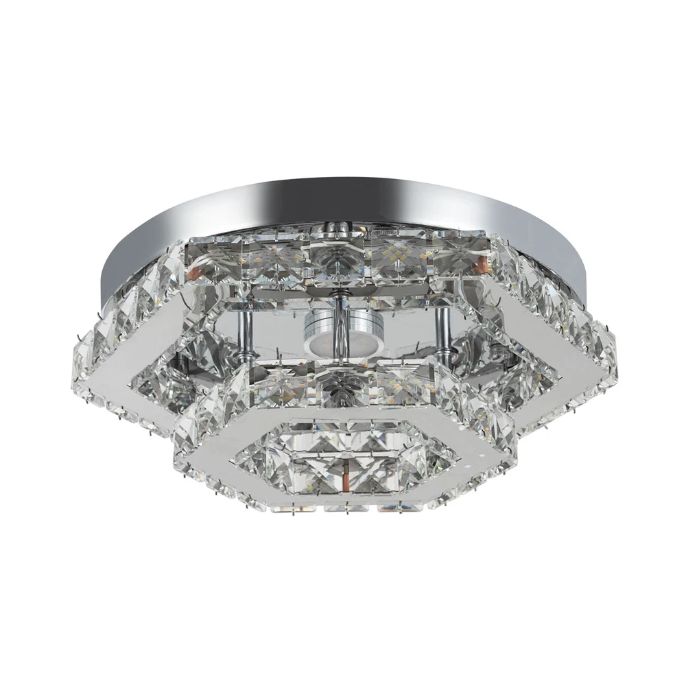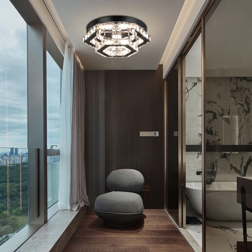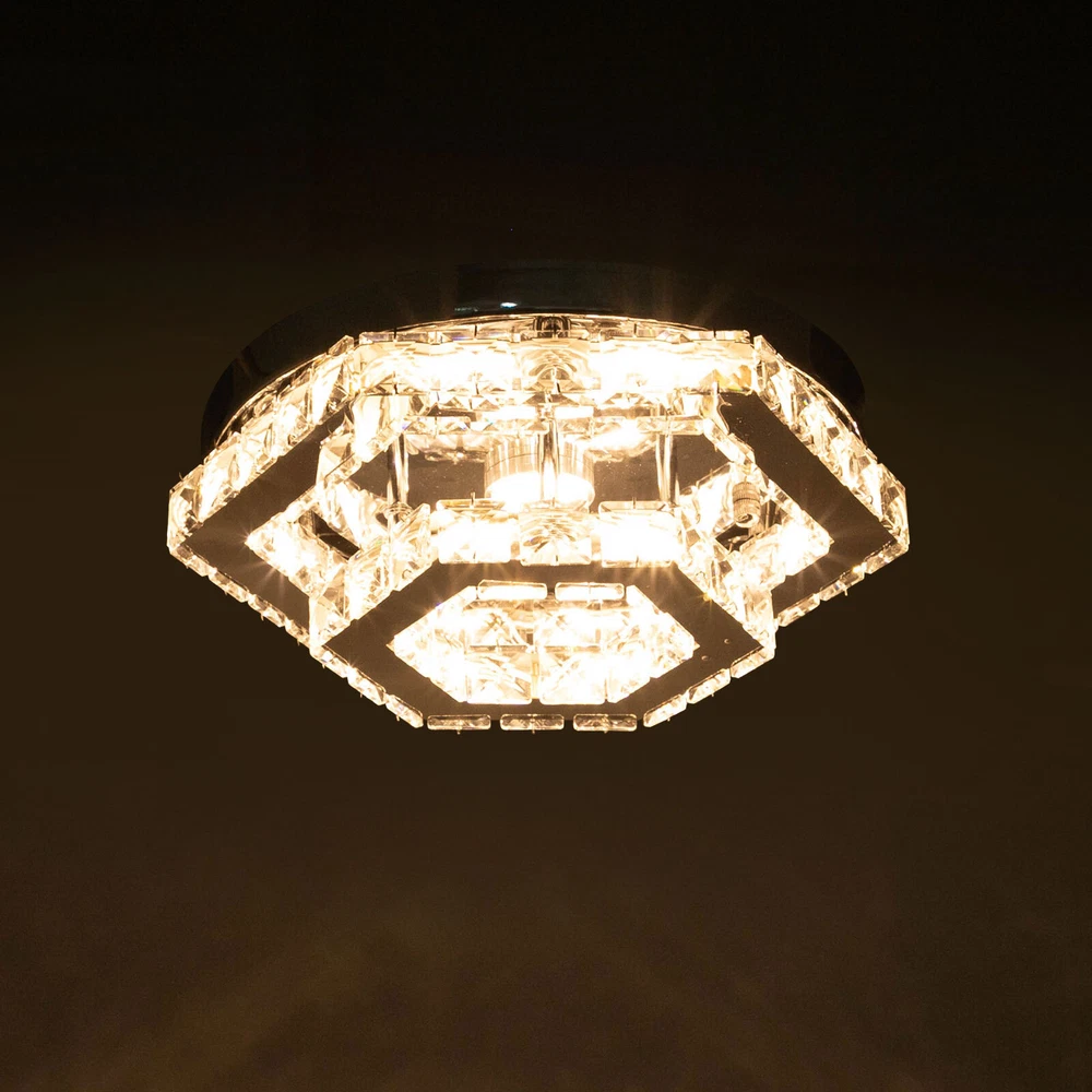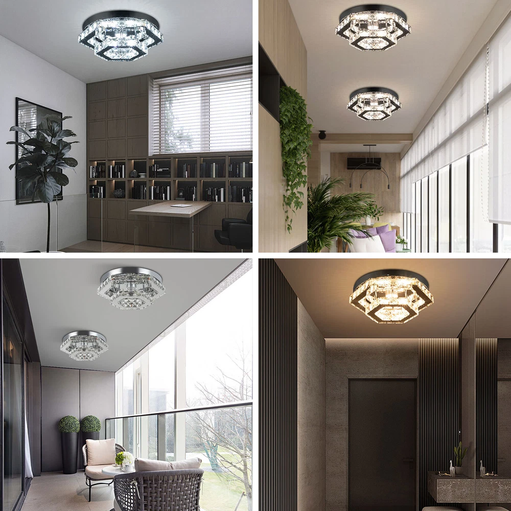 Description This crystal ceiling light combines a sophisticated look and a very modern atmosphere, not only creating a romantic and warm atmosphere for the living room but also creating a high-quality lifestyle. The high-quality material and exquisite workmanship make it durable. Bring it home quickly and add infinite excitement to your home environment! Key Features Build to Last: High-quality stainless steel, crystal, and exquisite laser cutting, and welding processes make the product resistant to high temperature, corrosion, and fading, which reduces the frequency of replacing lamps. Wide Application: The wide voltage (85-265V) allows it to be used in a wider range of applications. Excellent Light Source: The environment-friendly and energy-saving LED light with a high color ind 2 Tiers Crystal Ceiling Light, Modern Ceiling Mount Lamp Fixtures Remote Control Description This crystal ceiling light combines a sophisticated look and a very modern atmosphere, not only creating a romantic and warm atmosphere for the living room but also creating a high-quality lifestyle. The high-quality material and exquisite workmanship make it durable. Bring it home quickly and add infinite excitement to your home environment! Key Features Build to Last: High-quality stainless steel, crystal, and exquisite laser cutting, and welding processes make the product resistant to high temperature, corrosion, and fading, which reduces the frequency of replacing lamps. Wide Application: The wide voltage (85-265V) allows it to be used in a wider range of applications. Excellent Light Source: The environment-friendly and energy-saving LED light with a high color index can effectively avoid glare and stroboscopic, protect your eyes, restore the most authentic color of objects, serve an area of 53.82ft², and save your costs. Stylish Appearance: A hexagonal shape, shining chrome color, smooth lines, and beautiful two-layered crystals make it an unparalleled home décor piece that enhances the elegance of a room and adds a sophisticated aesthetic. Carefully Designed: The infinitely adjustable brightness, adjustable color temperature (3000-6000K), and three different light colors (warm, neutral, and white) can fully meet your usage needs in different scenarios, making it more convenient. Excellent Gift: The beautiful appearance and good practicality make it a great gift for parents, friends, and lovers on birthdays, holidays, and housewarming. Convenient to Use: It is basically assembled for you, and the ceiling light kit includes an English manual containing installation guides, all you need to do is follow the instructions to install the product to the ceiling. Easy Maintenance: A simple construction and smooth surface make this product easy to clean, and you just need to clean it with a dry cloth. Embrace Smart Life: Applied with a remote control, you can easily adjust the light colors and brightness while lying in bed within 16.4ft and don't need to get up and press the switch, bringing more convenience to your life. Protective Packaging: To prevent as much as possible damage to the product during transport, this product is packaged with foams that can effectively resist normal crushing and dropping. Details Stable Chassis : The 11.4" diameter round chassis increases stress area, ensures stable support for the light body, and presents beauty. Sparkling Crystals : Layered crystals have good light transmission and can enhance the visual effect of the entire lamp. Smooth Edges: They can care for your skin during cleaning and installation and also improve the beauty of the product. Application With an application area of 53.82ft², it can be widely used in indoor spaces, such as bedrooms, dining rooms, living rooms, kitchens, dressing rooms, bars, hotels, restaurants, offices, and so on. Specifications Material: Stainless Steel, Crystal Process: Laser Cutting, Welding Color: Chrome Style: Modern Efficiency: E Assembly Required: No Shape: Hexagonal EU Energy Label Efficiency Labeling Class: A++ to E Mounting Type: Ceiling Mount Control Method: Remote Control(Included), Wall Switch(Not Included) Remote Control Battery Type: 2* AAA Batteries (Not Included) Remote Control Distance: 5m/16.4ft Light Source: LED Light Strip( Included) Light Color: White, Warm, Neutral Luminous Flux: About 2200LM Color Temperature: 3000-6000K Brightness: Infinitely Adjustable LED Driver Power: 48W Actual Power: 20W Input: 85-265VAC Output: 36-85VDC 280mA Applicable Area: 5m²/53.82ft² Chassis Size(D*H): 29*2.5cm/11.4*0.9in Total Product Size(L*H): 33*11.5cm/13*4.5in Gross Weight: 3.05kg/6.72lbs Net Weight: 2kg/4.41lbs Package Size: 41*41*15cm/16.14*16.14*5.91in Package Included 1* Crystal Ceiling Light 1* English Manual All Accessories for Assembly Notes Please note that the wall switch (not included) does not control the color temperature. Please check the product size before ordering to make sure it fits your room. Please use the lamp within the applicable voltage range and clean it regularly. Please cut off the power supply when you clean the light. Please wipe with a soft cotton cloth and do not use household cleaning agents. To ensure your safety, we recommend that two people install this lamp together. Please install it by someone with an electrical license if necessary. Please wear electric insulation gloves (not included) and avoid scratching the surface of the lamp when installing. Please make sure that the power supply has been cut off before installation, and conduct a power test before installation. Please read the manual completely before use, and pay particular attention to the safety instructions included. Please allow the slight color difference caused by the shooting light and 1-3 cm error due to manual measurement, and make sure you do not mind before ordering. Payment Delivery details Terms of sales About us Contact us Payment We accept ebay payment 。 Fees such as import duties, taxes are not included in the item price or