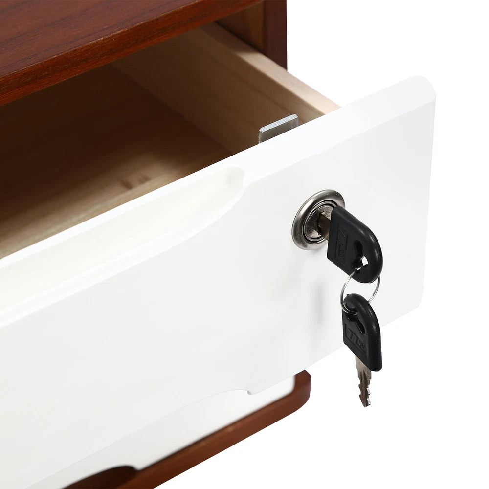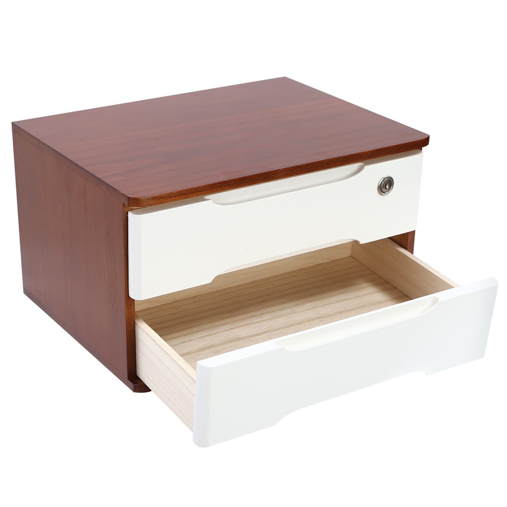 Description Do you feel annoyed by too many items on your desktop that are cluttered and unorganized? Our 2-tier organizer can help you solve this problem. This product is made of high-quality material, which ensures a long service life. The 2 drawers are convenient for you to organize different daily items, and the locking design effective ly protects your privacy. It can effectively help you reduce the pressure on your countertop, which is an ideal choice for you. Key Features Good Material: This product is made of high-quality tung wood with a spray painting process, which is hard, strong, anti-corrosion , not easy to deform, and has a long service life. Categorized Storage: The product has 2 drawers, so you can categorize and store your items in different drawers to give your desktop a neat look. In addition, the top can also be used to hold items, allowing you to maximize the use of your space. Protect Your Privacy: This product features the locking design that locks the drawer and can only be opened with the included key to protect your property. Strong Load-bearing Capacity: High-quality material and stable construction give the product a weight capacity of about 66.14 lbs , so you can store items on it with confidence. Save Space: This product is small in size ( 15.35*11.81*8.46 in ches) , fully utilizing vertical space, thereby reducing the burden on the countertop. Ready to Use: This product does not require assembly, and you can start using it once you receive it, saving the tedious installation process and making it more convenient. Effortless Cleaning: Thanks to the smooth surface and simple construction, you can easily wipe off the dirt on it with a soft cloth. Thoughtful Gift: This is an ideal gift for colleagues, friends, and family to help them organize their belongings and keep their desks tidy. Good Customer Service: We stand behind all our guests and look forward to assisting you with your purchase. It is our pleasure to answer your confusion and questions. The end of the story between us is not "we sell and you buy". Details Comfortable Handles: Each drawer has an ergonomic handle that is not only comfortable but also easy for you to pull the drawer. Smooth Edge: The rounded and smooth edges not only add to the aesthetics of the product but also improve the safety of use. Anti-slip Pad: It can keep the product stable and less likely to slip off while you use it. Application This product can be used in an office, study, bedroom, dresser, kitchen, etc. It is suitable for organizing documents, files, pens, notebooks, handy stickers, remote controls, staplers, cosmetics, greeting cards, tickets, business cards, stationery, jewelry, hair accessories, and so on. Specification Color: Walnut, White Shape: Rectangle Style: Modern Material: Tung Wood Process: Spray Paint Assembly Required: No Number of Tiers: 2 Number of Locks: 1 Number of Keys: 2 Max. Load Capacity: About 30kg/ 66.14 lbs Gross Weight: 4kg/ 8.82 lbs Package Size: 45*33*27 cm/ 17.72*12.99*10.63 in Product Size: 39*30*21.5 cm/ 15.35*11.81*8.46 in Package Included 1* 2-Tier Organizer 2* Keys 4* Anti-slip Pads Notes Please allow the slight color difference caused by the shooting light and the 1-3 cm error due to manual measurement, and make sure you do not mind before ordering. On Feb 16, 2025 at 21:35:01 PST, seller added the following information: