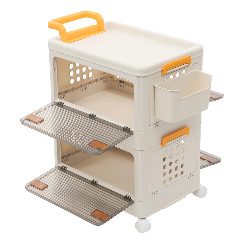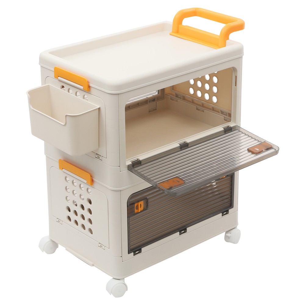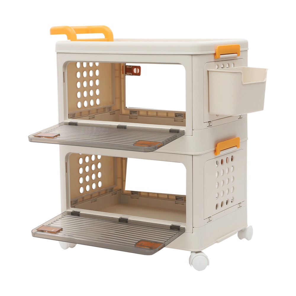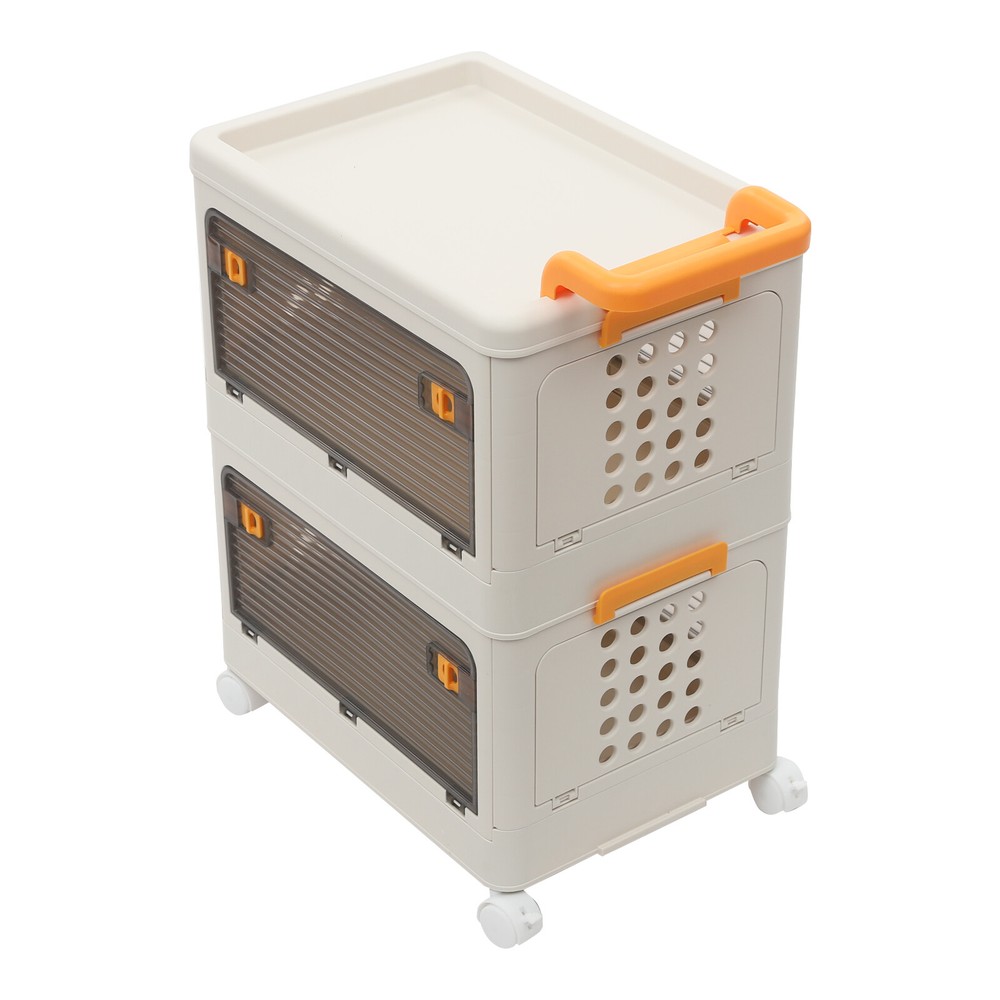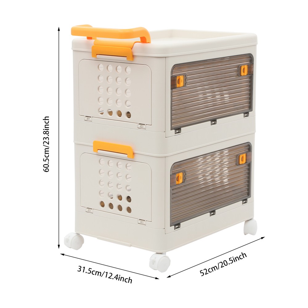 2 Tiers Foldable Storage Cabinet Organizer Box Plastic Storage Bins with Wheels