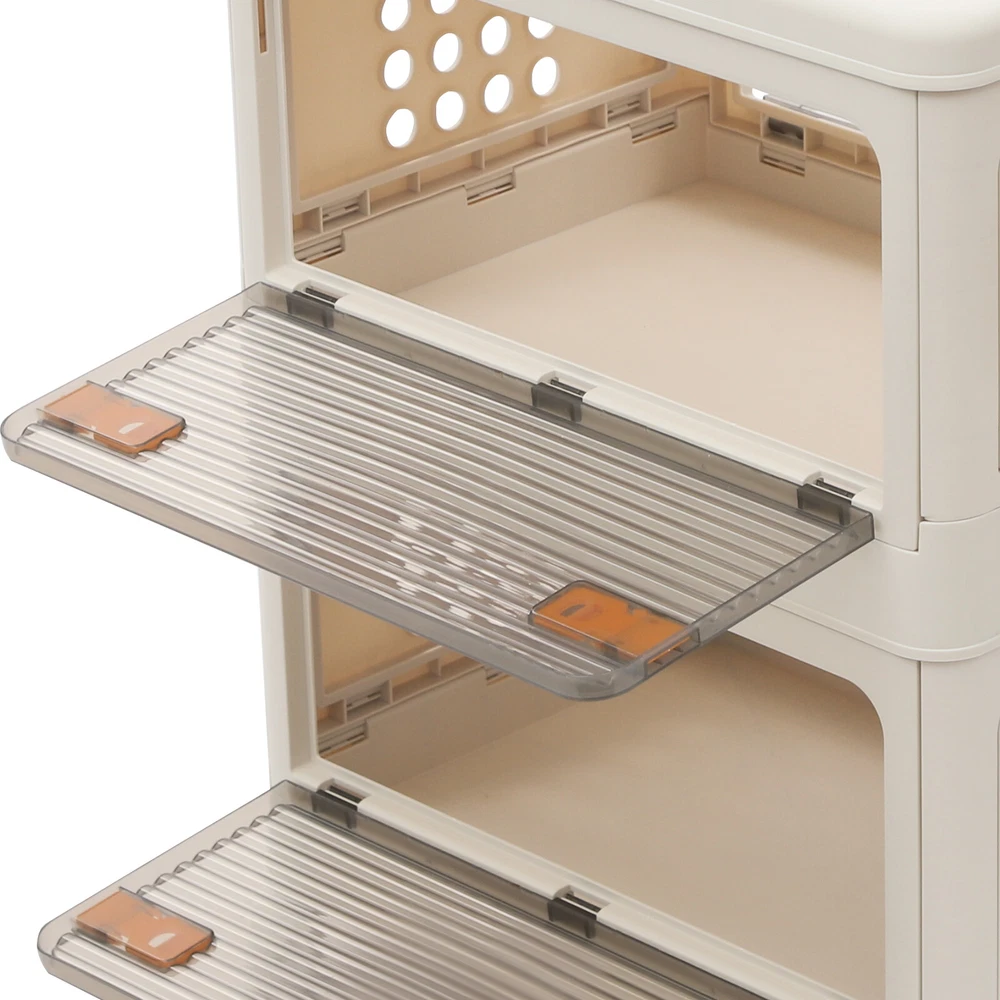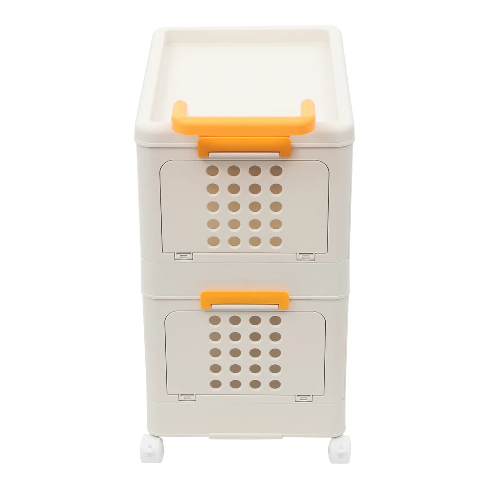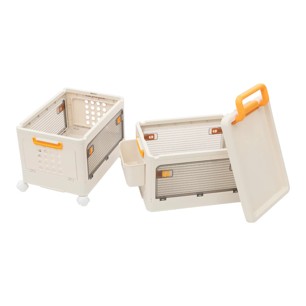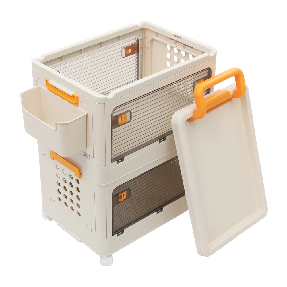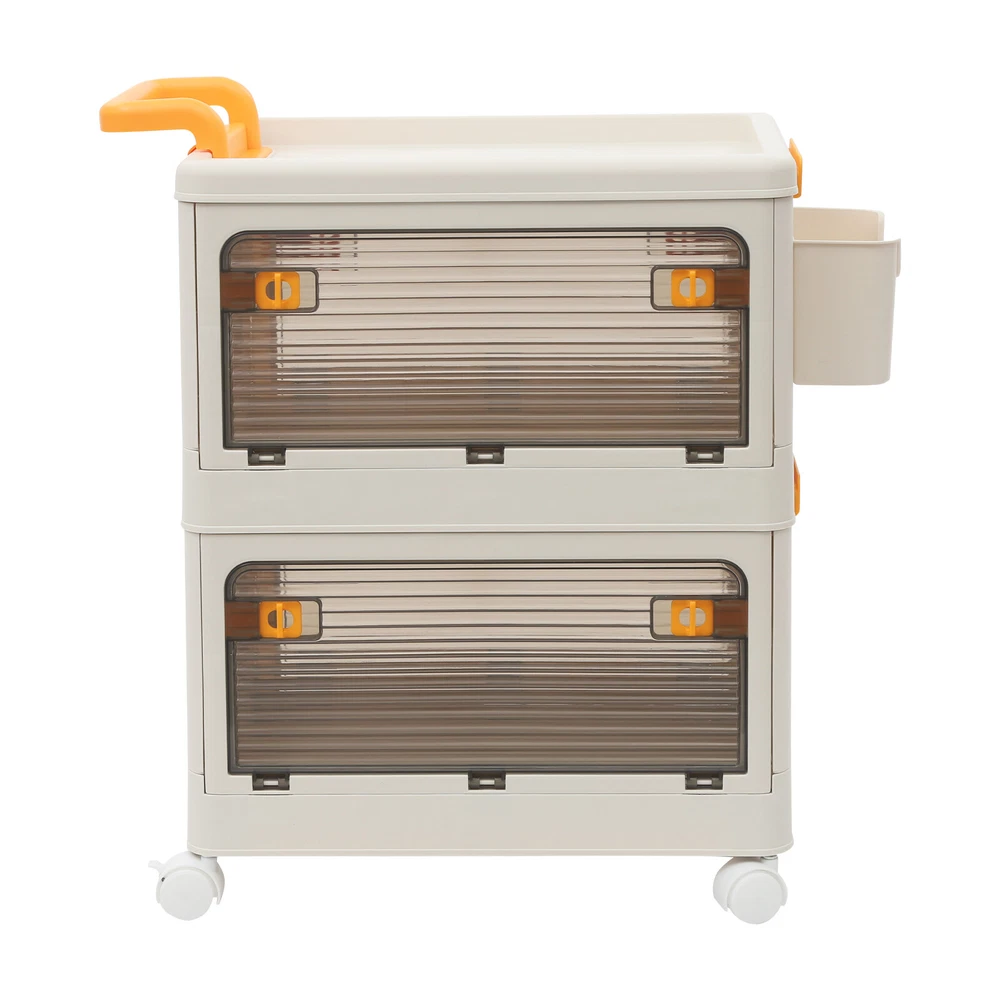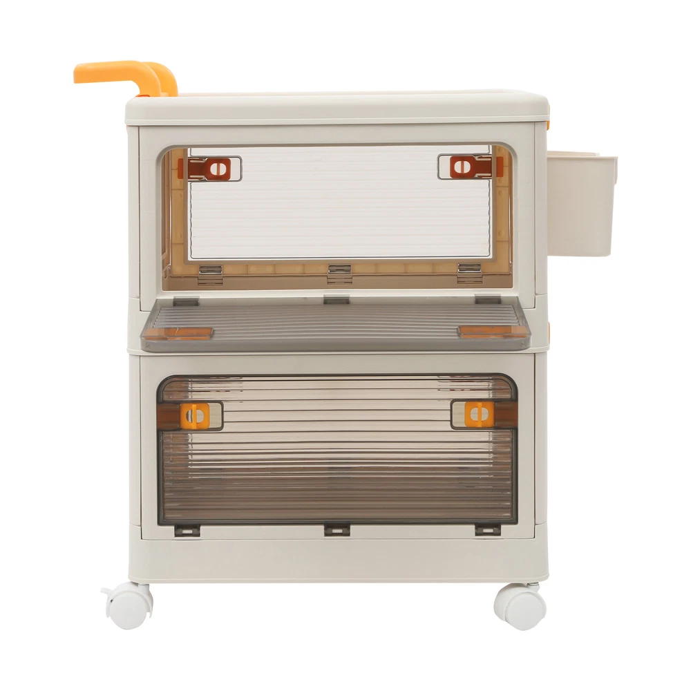 2 Tiers Foldable Storage Cabinet Organizer Box Plastic Storage Bins with Wheels