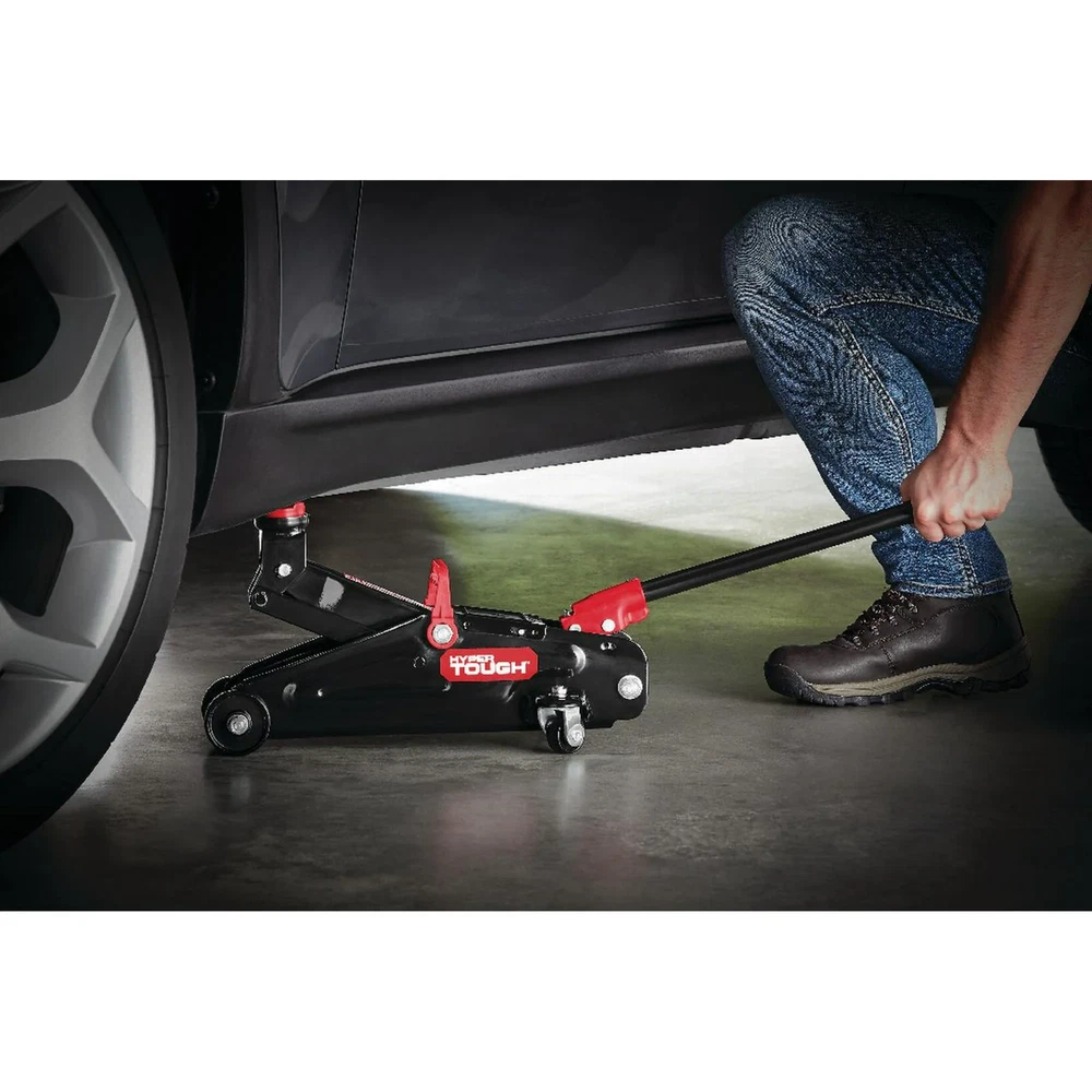 2 Ton Trolley Jack Floor Lift Car Truck Tire Change Portable Heavy Duty Garage The Hyper Tough 2-Ton Trolley Jack is a must-have accessory for all automobile owners so you can change tires or perform other vehicle maintenance with ease. With its heavy-duty steel construction, it has the strength to lift a wide range of makes and models, and the built-in safety valve protects against jack over-loading. This trolley jack features a minimum lifting height of 5-1/8" and a maximum height of 13", which is ideal for most cars, and a maximum load weight of 2 tons (4000 pounds). The swivel saddle provides smooth maneuvering and positioning while the over-pump bypass valve lets off excess pressure. The rear casters of this 2-ton trolley jack provide smooth maneuvering and positioning. It also features a lifting handle that detaches for transport and storage and a carrying handle for portability and for keeping it in your vehicle's trunk or in your garage, so you can be prepared at all times. Make vehicle maintenance easier with the Hyper Tough 2-Ton Trolley Jack. Hyper Tough helps get the job done. Whether you're new to home improvement or a DIY guru, Hyper Tough offers an assortment of affordable and reliable tools to help complete your projects. From power tools and hand tool sets to shelves and storage cases, Walmart.com has everything you need to tackle all your projects at Every Day Low Prices. Hyper Tough 2-Ton Trolley Jack Maximum loading weight: 2 tons (1814.3KG) Lifting range: 5-1/8" to 13" Heavy-duty steel construction provides stability and endurance Swivel saddle provides smooth maneuvering and positioning Carry handle for convenient transportation Rear casters provide smooth maneuvering and positioning Built-in safety valve protects against jack over-loading Hydraulic oil by-pass system protects ram from being over-extended Assembled Product Weight: 19.3 lb Assembled Product Dimensions (L x W x H): 17.25 x 7.62 x 5.50 Inches