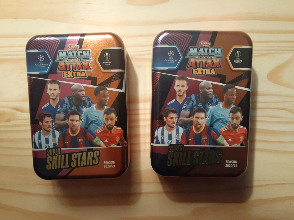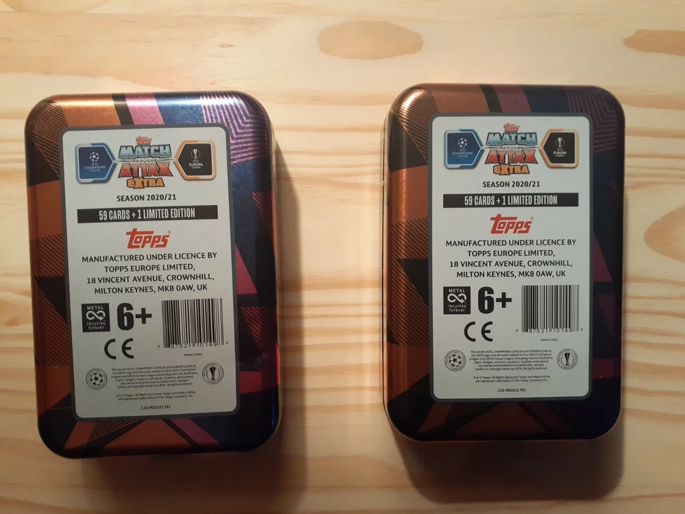 2 Topps Soccer Match Attax Extra Empty Tins 4"x6"x1.5". 2 tiny dents on back of one tin. See in pics.