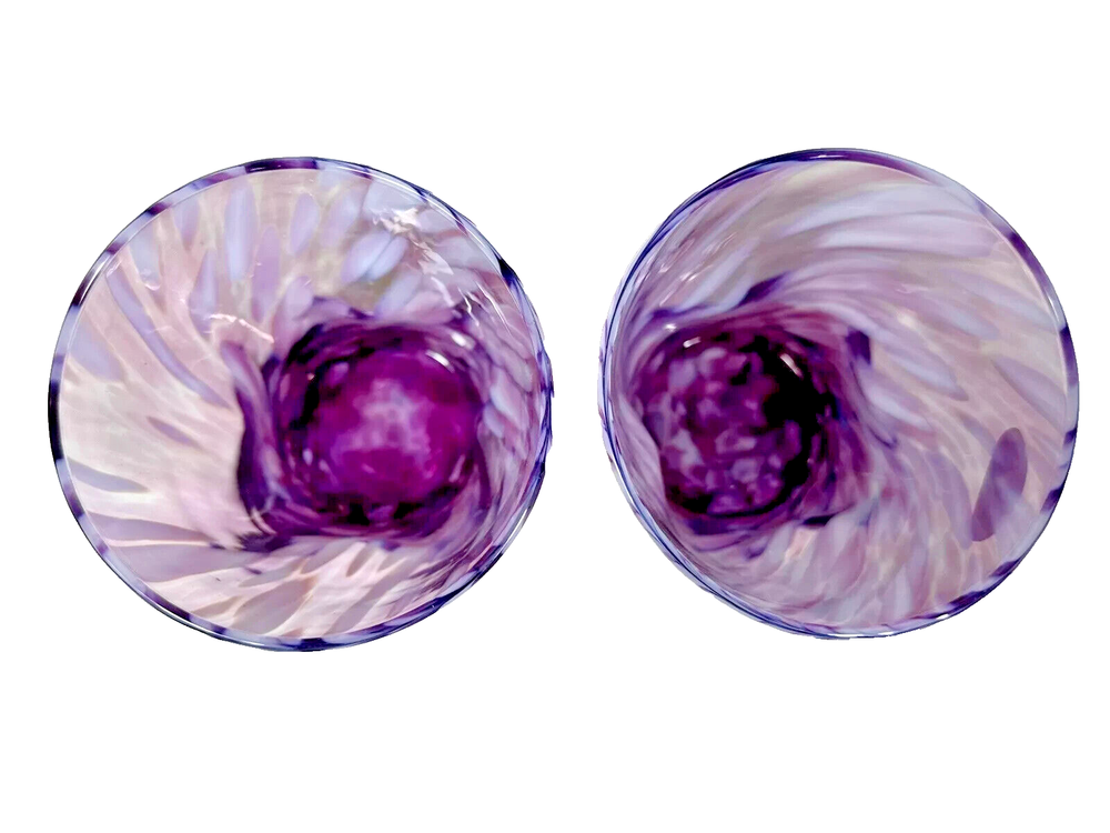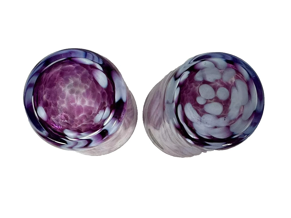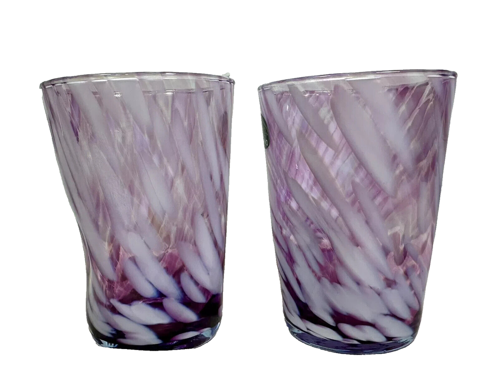 2 VETRO ESEGUITO PURPLE & WHITE MURANO TUMBLER DRINKING GLASSES NEW