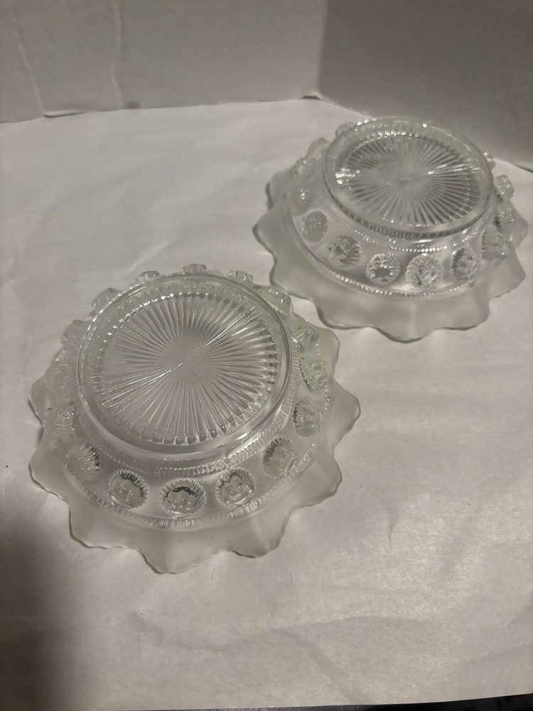 2 Vintage 5" EAPG Clear Glass Blackberry Berry Ruffled Compote Starburst Bowls. Condition is Used. Shipped with USPS Ground Advantage.
