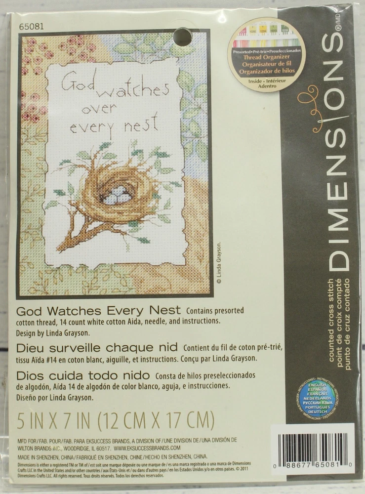 2 Vintage Dimensions Cross Stitch Pattern Kits God Watches Every Nest & Be Happy