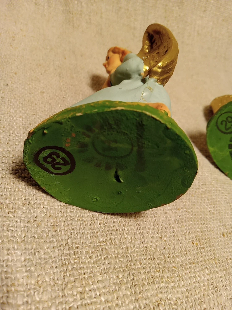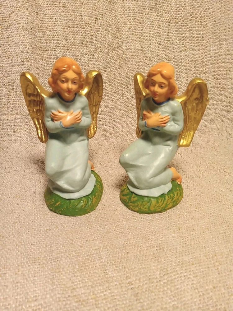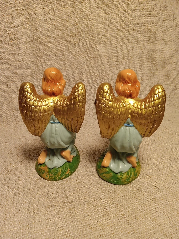 This beautiful vintage figurine set features two kneeling angels, made in Italy and crafted with exquisite attention to detail. The angels are depicted in a stunning composition?, perfect for adding a touch of elegance to any collection. The figurines are ideal for collectors of all kinds, especially those who appreciate angelic themes. They are perfect for display during the holidays or any other special occasion. Add these unique and charming angels to your collection today. They measure about 4" tall. No cracks or chips noted. We will ship Monday thru Friday with an occasional Saturday . This will ship Ground Advantage with the buyer paying the shipping costs. We do offer.combined shipping for multiple purchases and savings.