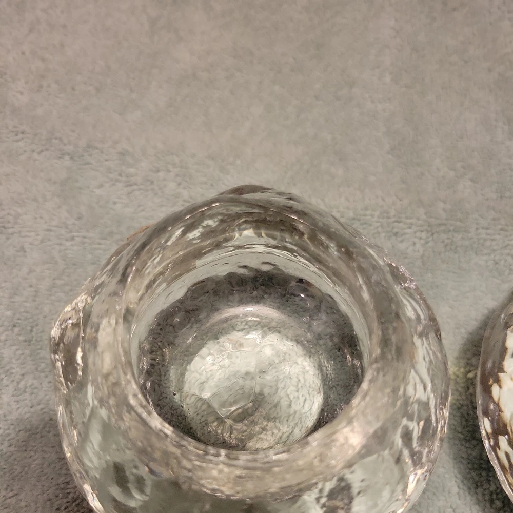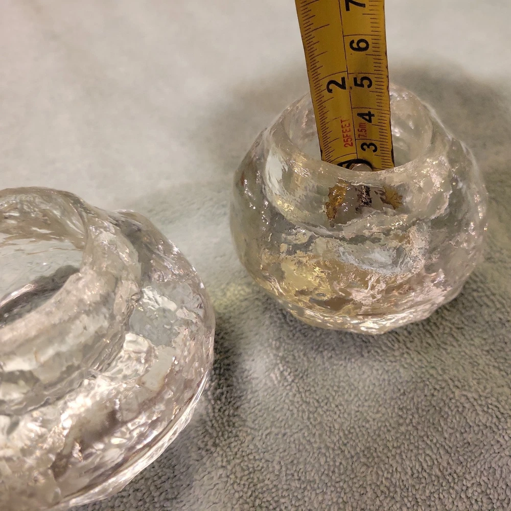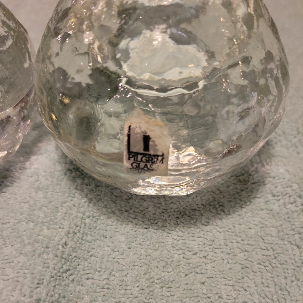 This product is a set of two vintage Pilgrim clear glass snowball ice votive candle holders, perfect for adding a festive touch to your Christmas décor. Made of art glass, these holders are suitable for holding votive candles and can also serve as paperweights. The clear color and snowball ice design give them an elegant and charming look that will enhance any space in your home during the holiday season.
