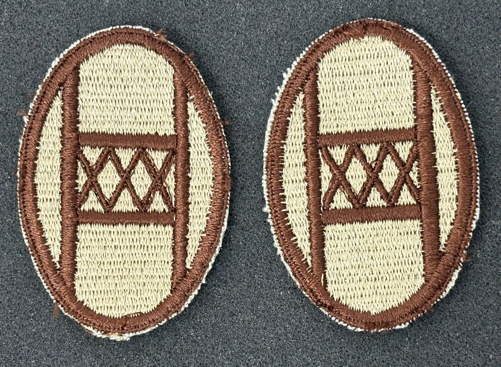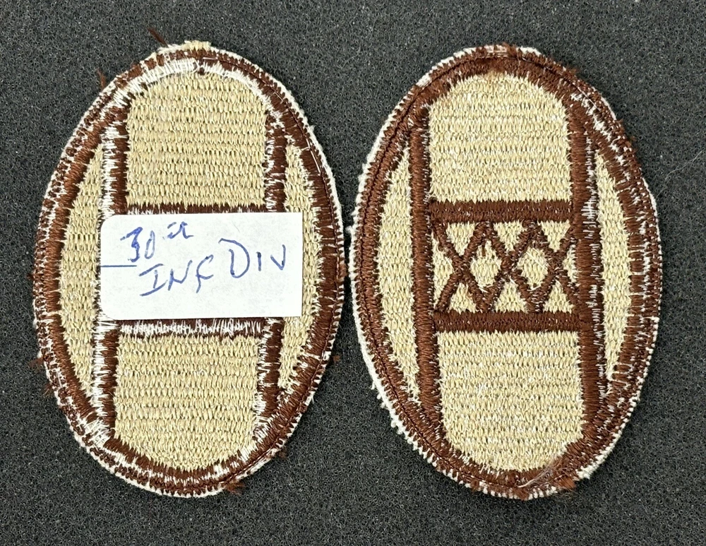 These vintage US Army patches feature the emblem of the 30th Armored Brigade and is made of embroidered fabric. Measuring 1 1/2" x 2 1/2", it is a perfect addition to any militaria collection. The patch was made in the United States and is an OCP SSI type. It is a great way to show support for the military and add a unique item to your collection.