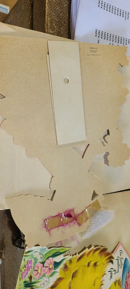 2 Vtg EASTER Ducks Girl in Fancy BONNETS 1940s Greeting CARDS