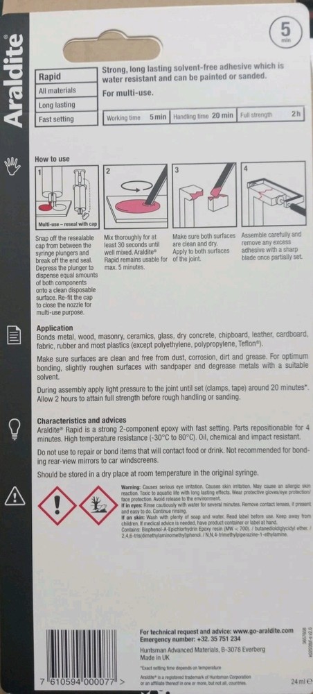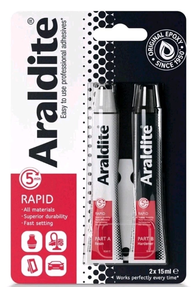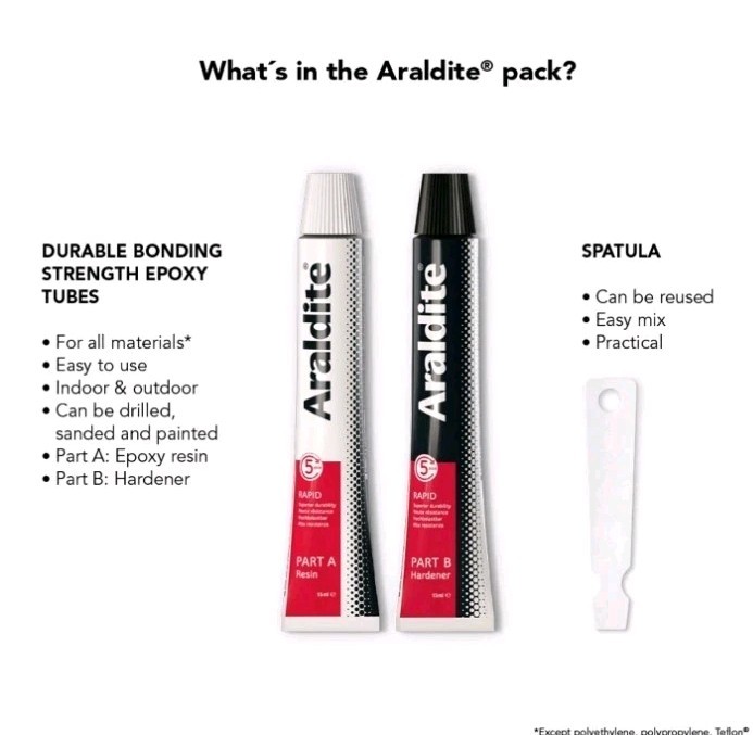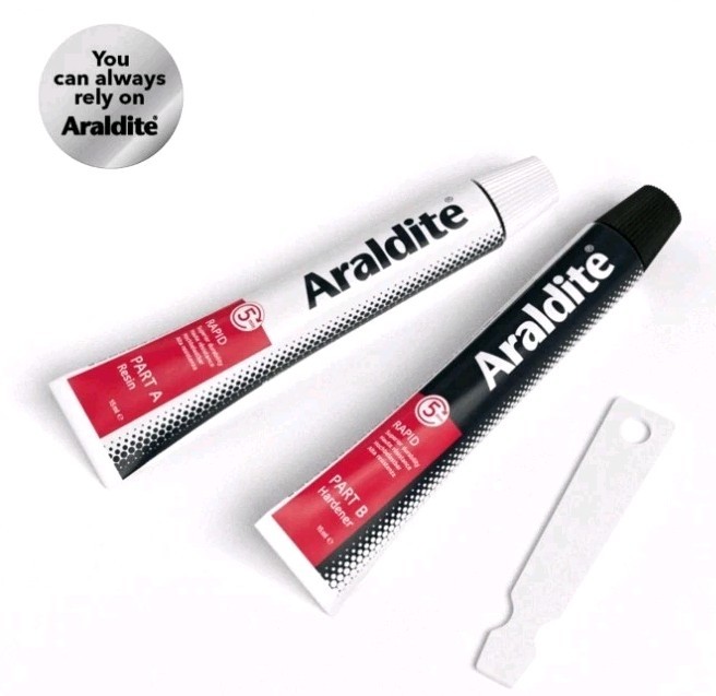 The product is a set of two packs of Araldite Rapid Super Strong Adhesive Glue, a two-part epoxy that sets quickly. Ideal for various bonding tasks in business, office, and industrial settings, this adhesive offers a strong and durable bond for a wide range of materials. With a quick setting time, it allows for efficient and effective use in various applications, making it a reliable choice for professionals and DIY enthusiasts alike.