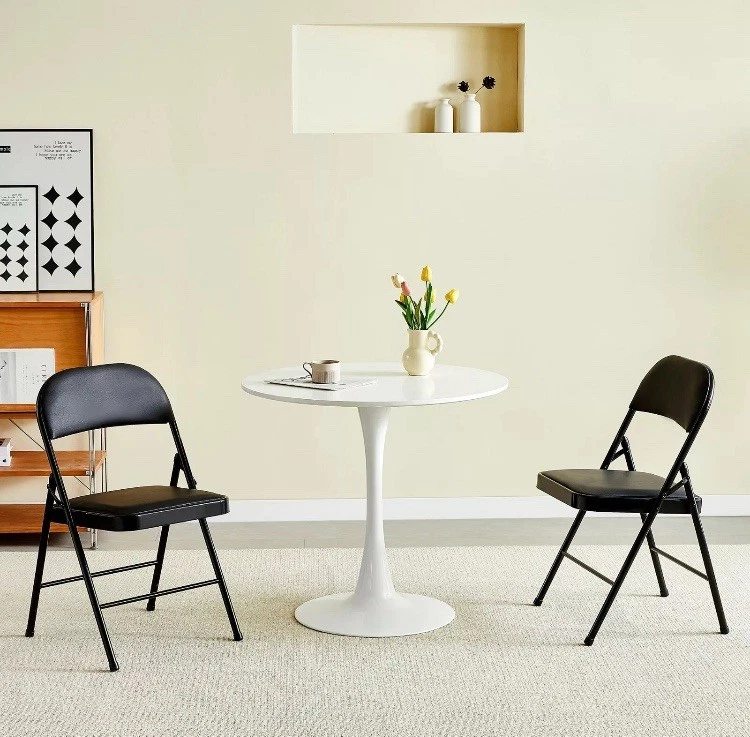 The 2 x Black Folding Chair is a sturdy and contemporary folding chair suitable for both indoor and outdoor use. With a maximum weight capacity of 120 kg, these chairs feature a padded seat for added comfort and style. The sleek black metallic finish and modern design make them a versatile option for home offices, studies, or parties. Fully assembled and requiring no additional tools for setup, these chairs are perfect for adults looking for a reliable and space-saving seating solution.