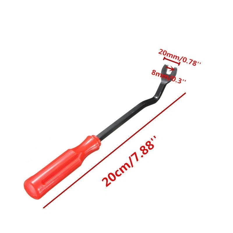 Description These tools allow you to quickly and easily remove car door panel and upholstery clips without causing damage to them. These car door panel and trim clip removal pliers are designed for the quick removal of staples, clips, door panels, facia and trim supports etc. without damage. The jaw design allows clip removal simply by squeezing the handles and the wide nose is designed to prevent breaking or tearing panels when undoing facings. Specifications Color: Black + Red Material: Plastic + Iron Size: 65 x 38 x 5cm Upholstery Remover Length: Approx. 21.6cm Removal Pliers Length: Approx. 23cm Package Included 1 x Door Removal Tool 1 x Clip Removal Pliers eBay Cross Border Trade powered by ChannelEffect