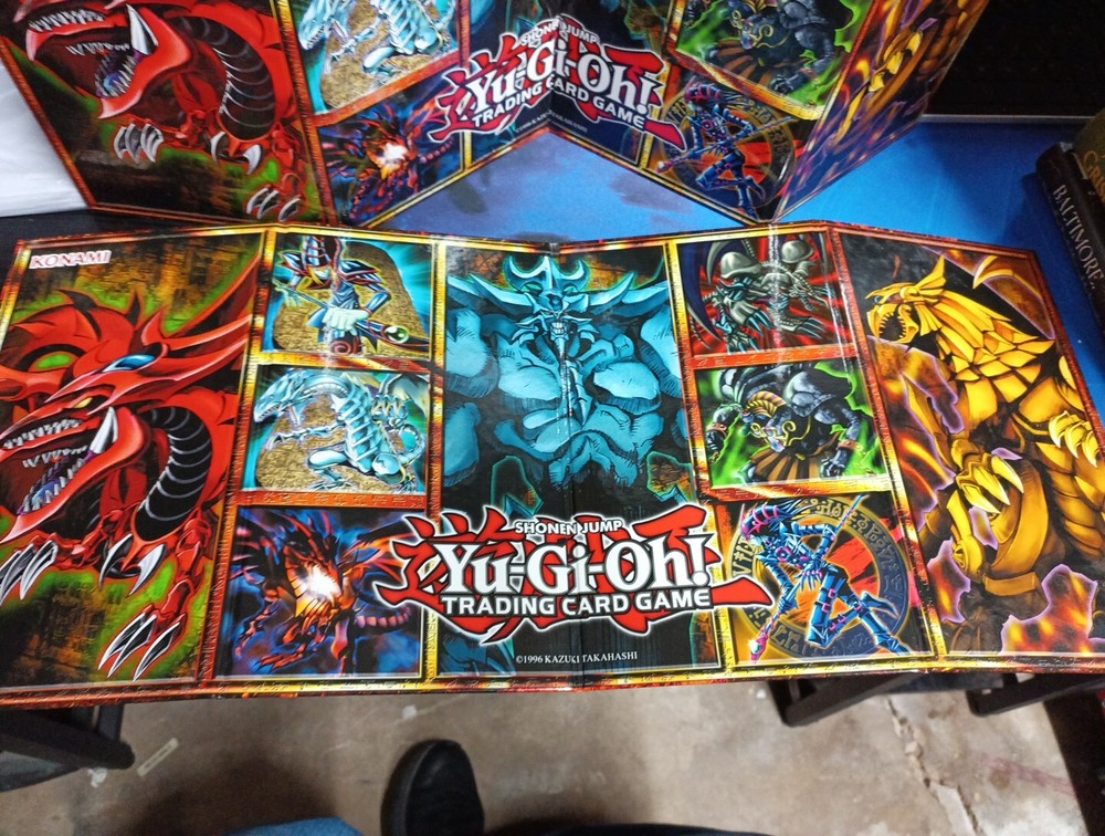 The product is a set of 2 Yu-Gi-Oh Trading Card Hardback Board Game Play Mats featuring artwork from the Yugi set released by Konami in 1996. These playmats are designed for the Yu-Gi-Oh! TCG and are part of the Shonen Jump franchise.