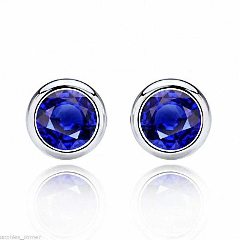 Stunning Bezel Set Sapphire Stud Earrings Bezel set in solid sterling silver. 2 ct. 6mm stone - 7mm with bezel. Gift box included. All Sterling Silver in this piece is Rhodium plated and will never turn color. Listing and template services provided by inkFrog Shipping We ship next day. All items purchased on Friday will ship Monday (unless a holiday). Items can take longer than (Ebay time frame is generous). You can upgrade to Priority Ship (2-3 day delivery). Returns We have a 30 day no questions asked return policy. No RMA needed. All items and parts must be returned including packaging (gift box). Please include your user name and item number. We reserve the right to include a restocking fee. No upgraded shipping will be refunded.