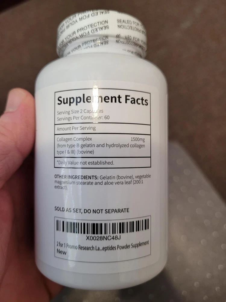Store New Arrivals Add to Favorite View Feedback Contact 2 for 1 Promo 240 Collagen Pills - 6000 Mg per Day. Grass Fed Anti-Aging Support for Skin, Joints, Tendons, Bones, Hair and Nails. Paleo Friendly. Collagen Peptides Powder Supplement… Description Unit Count 240.00 Count Item Package Quantity 2 Product Benefits Anti-Aging Item Weight 0.27 Kilograms Special Ingredients Collagen Age Range (Description) Adult Diet Type Gluten Free Package Information Bottle Flavor Unflavored Item Form Capsule Package Dimensions 4.5 x 4.5 x 4.5 inches; 9.59 ounces KEEPS SKIN YOUNG, ANTI-AGING - Research Labs Collagen Supplements give the skin its fullness and plumpness STRENGTHENS JOINTS, BONES, TENDONS, MUSCLES, HAIR AND NAILS - Studies show that collagen reduces joint pain and strengthens connective tissue, muscles and bones. HEALS YOUR GUT - Research Labs Collagen Pills repairs and strengthens stomach and intestinal lining which helps ease leaky guy syndrome helping your body absorb nutrients.(7)(8) IMPROVES SLEEP & MAX ABSORBTION – Research Labs Hydrolyzed Collagen Powder is highly bioavailable which means it is easily and rapidly absorbed into the body. NEW LABEL, SAME AMAZING PRODUCT! TAKE 4 CAPSULES TWICE A DAY FOR 6000 mg. One capsule is 750mg. Product Description Quality That Works Every batch of product Research Labs manufacturers is analyzed both internally and externally via a third-party independent laboratory to ensure that your product contains the necessary standardized level of purity and active components. We evaluate each batch for any potential additives, contaminants, and impurities to ensure the highest level of quality. Adherence to Governmental Regulations All Research Labs products are manufactured in facilities that meet FDA's current Good Manufacturing Practices. Additionally, these facilities are routinely evaluated to make sure that all policies, methods, and documentation standards are upheld when creating trustworthy and effective products. Innovation Fueled by Science Research Labs products are innovated from many scientific studies showing effectiveness. Our Committee of the most respected experts in their field and Advisory Board help us to continually advance, innovate and find new methods to enhance our customers lives. Premium Supplements That Work JOIN US IN FEELING YOUR BEST! Enhanced Absorption No additives Trusted Manufacturer Unique Formulas ABOUT US We offer the best prices around on high quality products. Our E-store includes media such as books, movies, music and games while offering electronics, toys, sporting apparel, clothing, tools, general home, garden items and more. SHIPPING We are always working hard to ensure your package arrives as soon as possible. Please understand that some factors like weather, high postal traffic, and the performance of shipping companies are outside of our control. We offer free shipping to the lower 48 states and ship within 2 business days of payment, usually sooner. We do not accept P.O. Boxes. Please provide a physical address. RETURNS We offer a 30-Day Return Policy on items which you are not completely satisfied with. You have the option for a full-refund or an exchange of the item. No returns are available on items shipped outside of the USA. PAYMENT We accept PayPal. CONTACT US This page content is yet to come Please ad us to your favorite seller and visit again later Thank You CUSTOMER SATISFACTION We try our very best to make sure every customer is completely satisfied. If there's a problem, message us! We're happy to help.