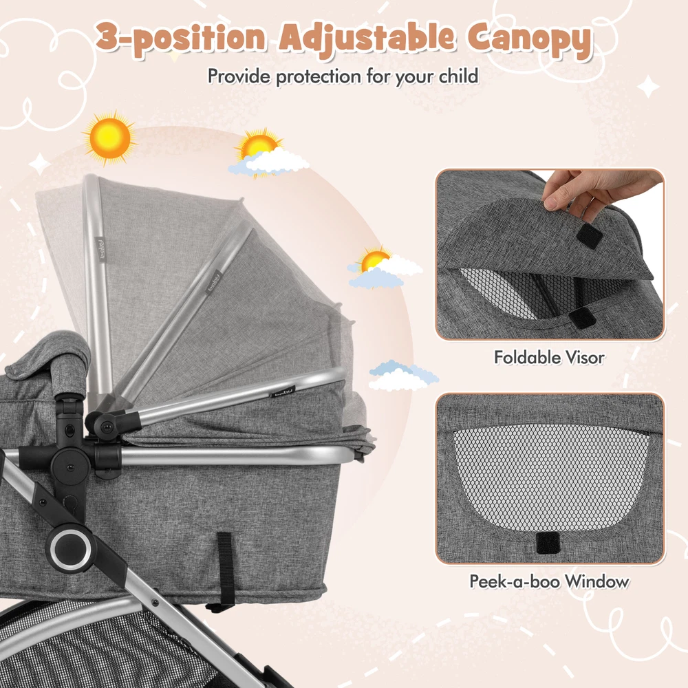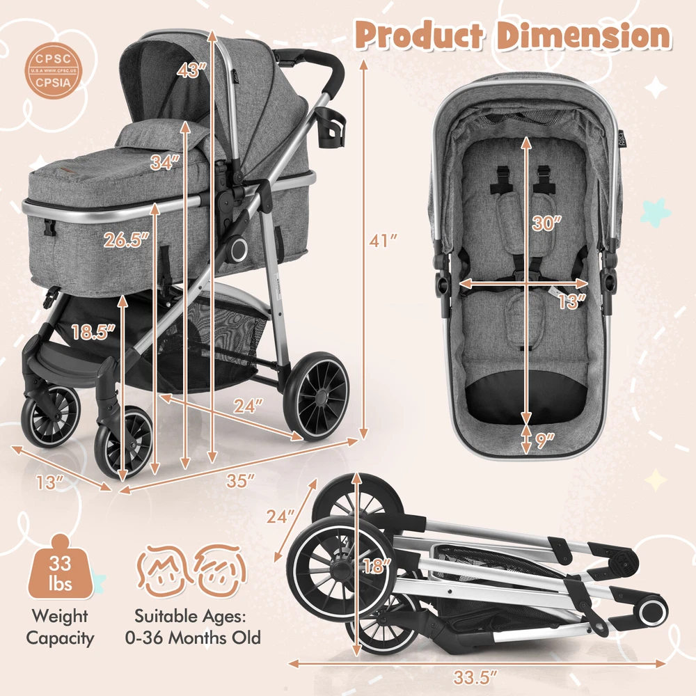 Color: Gray Firmness: Firm Set Includes: 1 x Baby Stroller Brand: Costway Assembly Required: Yes Weight: 22 lbs gtin13: Does not apply MPN: BEBAY046EBAYGRA3121 Age Level: 36 Months & Under Weight Capacity: 33 lbs Material: Steel, Aluminum, Polyester, EVA UPC: Does not apply Features: High Landscape Baby Strolle, Reversible Seat, Shockproof Wheels Department: Baby Number of Items in Set: One-Piece Size: 35" x 24" x 43" (L x W x H) Assembly Status: Assembly Required Type: Baby Stroller