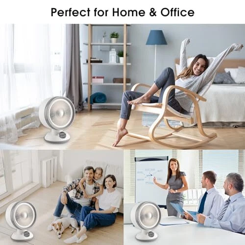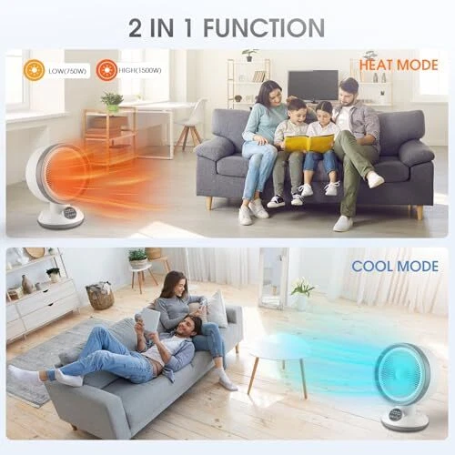 【3 Modes for All Year Round】This 2 in 1 electric heater fan not only efficiently heats with low(750W) or high(1500W) heat settings, but also offers a cool breeze with fan setting. This portable heater fan keeps you cool in summer and warm and cozy in winter. 【55° AUTO OSCILLATING】 This personal heater can smoothly swing 55 degrees from the left to the right allows the warm and cool air to be blown to more than just one place. It’s really nice for office, bedroom, and other areas of your home helps improve air circulation. 【Compact and Portable】Dimensions: 11.22X 9.25 x 15.35 inch, 4.76 pounds.The compact and lightweight design makes it easy to move the heater from one room to another.It will perfectly fit your home, bedroom table, office, or other personal spaces. 【Easy to Control】 You can change the temperature and mode by the buttons under indicator light. This space heater and fan combo comes with a multi-function remote control allows you to adjust settings and cool down without having to leave your seat. 【Safe & Reliable】Tip-over switch will auto shut-off when the heater knocked over; Overheat protection will auto shut-off when the heater overheats.Effectively avoiding fire or any other safety accident.