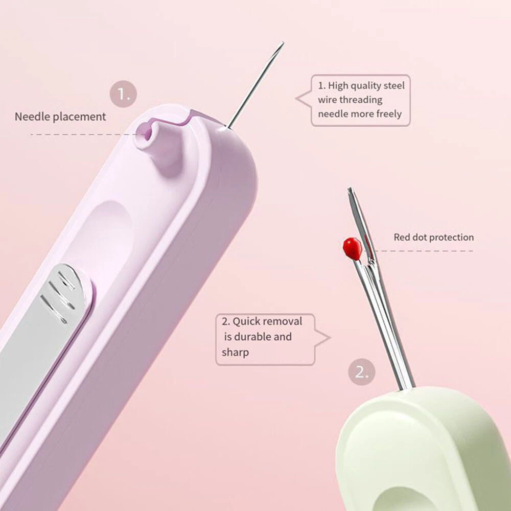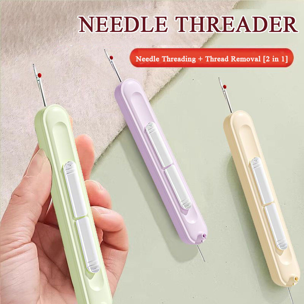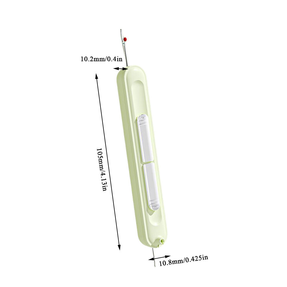 Needle Threader Home Use Tools 2-in-1 Needle Threader Sewing Supplies 2-in-1 Description: 100% Brand New and high quality. Dual Functionality: This needle threading and seam remover tool combines two essential functions in one. With its double-head design, it allows you to easily thread needles and remove stitches without the need for multiple tools. It saves time and effort, making your sewing tasks more efficient. Telescopic Storage Design: The telescopic storage design of this tool ensures that it can be easily stored and carried around. When not in use, simply retract the tool to protect the needle and keep it safely stored. This makes it perfect for on-the-go sewing and convenient for travel or everyday use. Material:ABS+stainless steel Color:green,purple,yellow Size:105*10.2*10.8mm (1 inch = 25.4mm or 1mm = 0.0393 inch) Package Includes: 1PC Needle Threader Notice: 1. Please allow 2-3% error due to manual measurement. Please make sure you do not mind before you bid. 2. The colors may have different as the difference display,please understand.