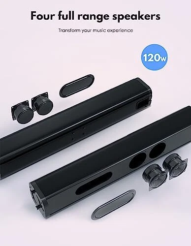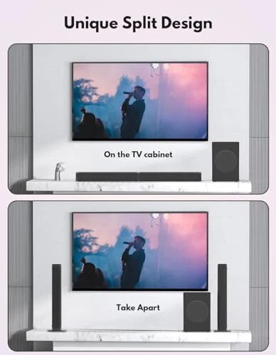 Return Policy Fast Delivery Trusted seller 2 in 1 Separable Sound Bar for Smart TV with Subwoofer, Bluetooth 5.0 Surround Sound System for Home Theater, ARC/Optical/Aux/USB TV Speaker, Treble/Bass Adjust, 10 EQ Modes, Remote Included Product Description ?VERSATILE 2-IN-1 DESIGN: Experience the best of both worlds with upgraded detachable soundbar and subwoofer combo. Enjoy the convenience of a sleek soundbar for everyday use, or attach the powerful subwoofer for deep, rumbling bass that brings your entertainment to life. ?DEDICATED 6.5’’ SUBWOOFER: Immerse yourself in a truly cinematic audio experience. Our new powerful subwoofer delivers crystal-clear dialogue, rich midrange, and immersive surround sound, creating an atmosp that transports you right into the heart of your favorite movies, games, and music. ?EFFORTLESS SETUP AND CONNECTIVITY: Say goodbye to complicated installations. Our soundbar and subwoofer system is designed for easy setup and seamless connectivity. Simply plug in the soundbar and subwoofer, and enjoy powerful sound within minutes. Bluetooth 5.0 enables you to connect the soundbar to your smartphone/tablet/laptop wirelessly. With 10 EQ modes to choose from, you can fine-tune the sound to match your content and create a personalized audio experience. ?PREMIUM AUDIO QUALITY: Don't compromise on sound quality. Our 2-in-1 soundbar and subwoofer combination is built with premium audio components, ensuring clear, balanced sound across all frequencies. Hear every detail with precision and enjoy a truly immersive audio experience. ?STYLISH AND SPACE-SAVING: Enhance your living space with our sleek and modern soundbar design. Its slim profile and detachable subwoofer allow for flexible placement options, fitting seamlessly into any home decor. Save space without sacrificing sound quality or style. ?KIND NOTE: To ensure compatibility when setting up, please switch your TV sound output to PCM audio output manually if your TV doesn’t do that automatically. When displaying apps like Netflix, Hulu or Prime video, please turn off the Dolby audio or DTS function in your app sound settings. You can also choose to switch it to STEREO output. ?WHAT'S IN THE BOX:Two tower speakers, one subwoofer, remote control, desktop gasket, DC Adapter, long line cable, short line cable, HDMI ARC Cable, AUX audio cable, AUX to RCA audio cable, Optical cable, Wall mount screws, User Manual. Shipping Returns Payment Shipping Shipping is FREE to all addresses other than APO/PO boxes in the lower 48 states. All our stock ships from US-based warehouses. Shipped via USPS or UPS (depending on location and package weight) Unless stated otherwise, all orders will ship within 24-72 hours of your payment being processed. Check our feedback to see the great reviews of FAST shipping we offer. Returns Seller does not accept returns Payment We currently accept payment via eBay managed payments only. Once payment is cleared, we will dispatch your shipment within 1-3 business days. Please refer to the "Shipping" tab for more information regarding shipping speed to your destination.