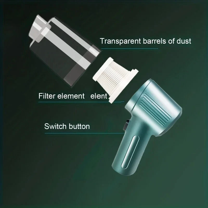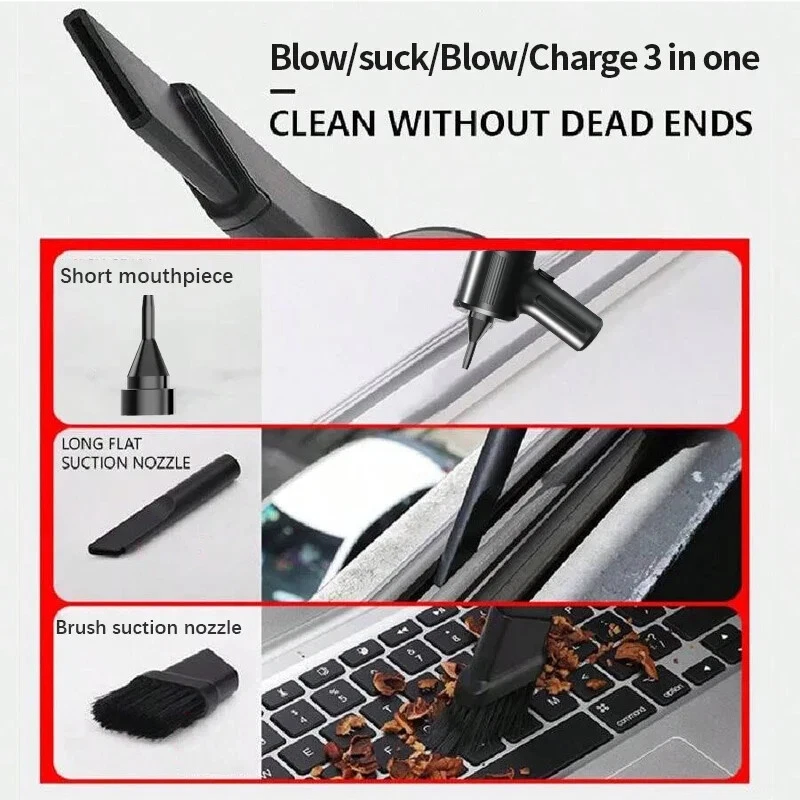 2 in 1 Wireless Car Vacuum Cleaner Multifunctional High Power Portable Mini Handheld Cleaner Household Appliances Feature: • Rechargeable Battery : No need to constantly replace batteries. Simply recharge the vacuum cleaner and use it again and again. • Wireless Convenience : No more tangled cords or limited mobility. The wireless feature allows for easy and convenient use in any room. • Powerful Suction : The 80w power and strong suction ensure that even the toughest stains are removed with ease. • Dry and Wet Use : This vacuum cleaner is suitable for both dry and wet use, making it versatile and perfect for any cleaning task.