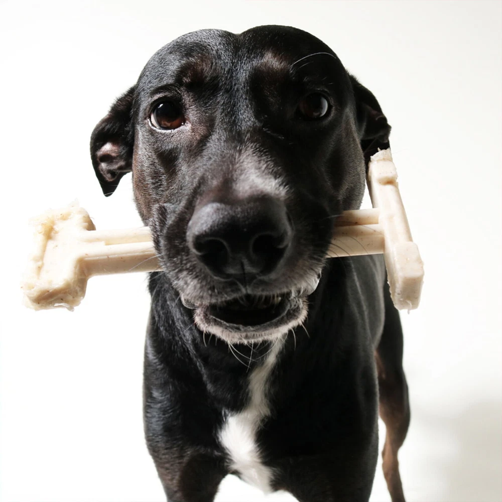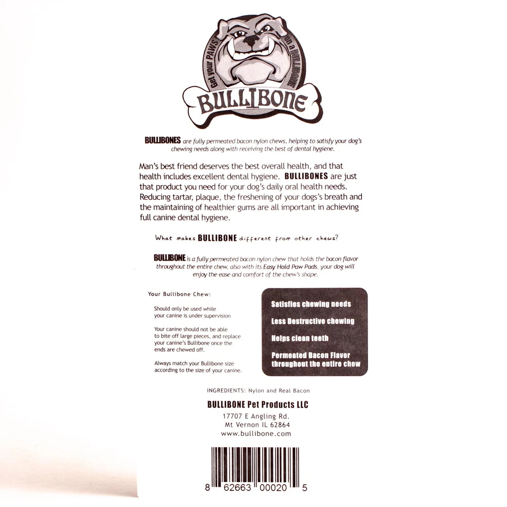 Bacon Flavored Oral Care Dog Chew Toy, Large Keep your furry friend distracted and entertained with this Dog Chew. The brand's dog chew toys are specially designed for playful pets and help convert their high energy into positive playtime. It is made with extra durable nylon material to make it extra strong. The dog chew is bacon-flavored. This vet approved toy helps to promote good dental hygiene. This nylon dog toy helps to reduce plaque and tartar while keeping your pet's breath fresh. Flavored Oral Care Dog Chew Toy, Large Tastes good while promoting canine dental hygiene Fully permeated bacon-flavored nylon dog toy Helps to reduce tartar and plaque Freshens dogs' breath Bacon dog chew toys taste deliciously meaty Can be used as part of a reward system Tasty snack between meals Ingestible and safer than rawhide Vet-recommended With easy-hold paw pads Extremely durable; it will take ample time for dogs to chew it Bacon flavoring stays throughout the life of the entire bone Keeps dogs preoccupied and entertained Redirects potentially destructive chewing behavior Nylon dog toy tough enough for even the most vigorous chewers Size: large (also offered in other sizes) On Feb 10, 2025 at 20:07:10 PST, seller added the following information: