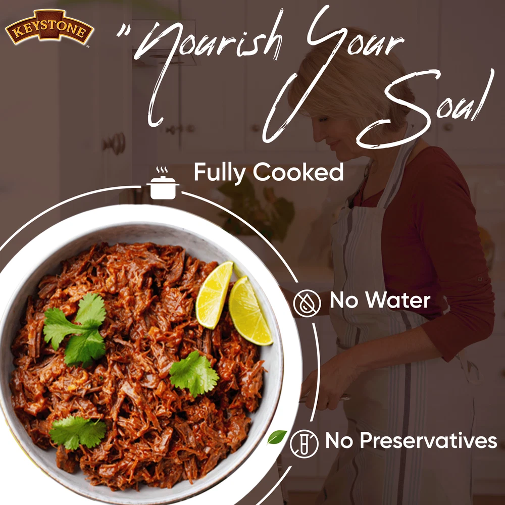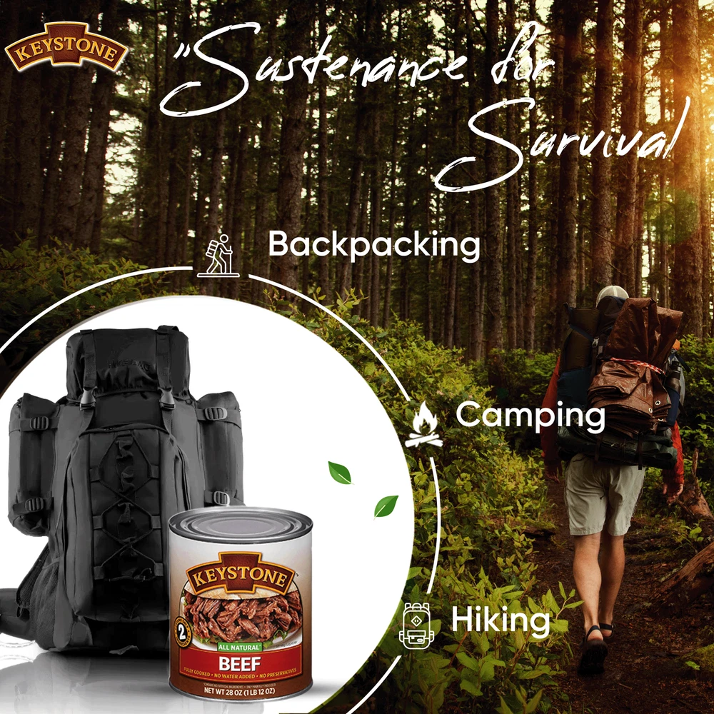 Make delicious and quick meals with our fully cooked, all-natural canned beef. Available in 28-ounce and 14.5-ounce sizes, our canned meats contain absolutely no preservatives or added water. Our canned beef is just like home-cooked pot roast, but without the long cooking time. Keep your pantry stocked with a quick source of clean protein that's easy to prepare on the stovetop or in the microwave. Our family-owned business has been raising and producing all-natural meat products in Ohio, USA for four generations. We start with premium lean beef, add a pinch of sea salt, and then slow cook it to perfection. Our canned meats contain only meat and sea salt - that's it! Make our canned beef your meal solution and be sure to check out all of our natural, fully cooked canned meat varieties for incredible meals every time. All Natural Fully Cooked Heat-and-Eat Canned Meat High Protein No Artificial Ingredients Carb Free Gluten Free Fast Food Good for Quick Meals: Ground Beef, Sous Vide, Grilling, Soups, Stews, Stir-Fries, Roasts, Casseroles, and More