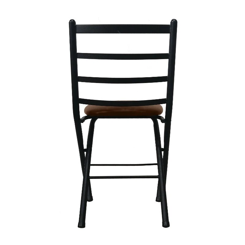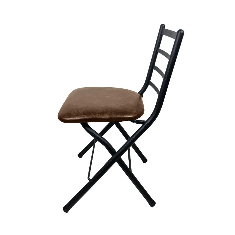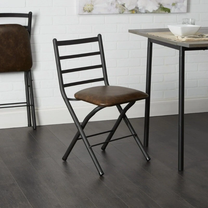 SLAT FOLD CHAIR Vegan Leather Cushion Sturdy Black Metal Frame Supports an Adult up to a 300 lbs. capacity Minimal Assembly Easy Fold Up For Easy Storage Foot Rest Accents Well With Most Décor Styles Package Dimensions:17.75″x13.75″X36.25″ Chair Dimensions:17″x18.63″x29.88″