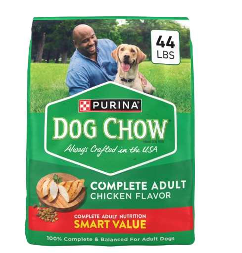 Purina Dog Chow Chicken Flavor Dry Dog Food, This delicious, wholesome dog food made with high quality ingredients is carefully crafted to support your dog's healthy nutrition and has a taste dogs love. This Purina dry dog food is made to provide the 100 percent complete and balanced nutrition adult dogs need to help them live long, healthy lives. Nutritious ingredients and high quality protein for dogs support strong muscles for an active lifestyle that helps keep your dog happy and healthy, while crunchy dog kibble Purina Dog Chow Chicken Flavor Dry Dog Food, 44 lb Bag 100 percent complete and balanced dry dog food for adult dogs Hard dog food featuring 23 vitamins and minerals for dogs to help support a healthy, active life Easily digestible Purina Dog Chow chicken flavor dog food Crunchy dog kibble helps clean teeth Highly digestible wholesome dog food formula Animal lifestage Adult Weight 44 lb Pet food flavor Chicken Meat type Chicken Pet food condition Dry Shelf life 546 days Animal health concern Immune Support, Digestive Care Brand Dog Chow Pet food form Kibble Instructions The recommended feeding amounts are based on using a standard 8 oz/250 ml measuring cup which contains approximately 116 g of Dog Chow Complete Adult Chicken Flavor. Amounts are recommended for an average adult dog with normal activity. Remember food intake requirements vary depending on age, activity and environment, and should be adjusted accordingly.When switching to Dog Chow from another food, please allow 7 - 10 days for the transition. Gradually add more Dog Chow and less of the previous food to your pet’s dish each day until the changeover is complete. This gradual transition will help avoid dietary upsets. Feeding Instructions The recommended feeding amounts are based on using a standard 8 oz/250 ml measuring cup which contains approximately 116 g of Dog Chow Complete Adult Chicken Flavor. Amounts are recommended for an average adult dog with normal activity. Remember food intake requirements vary depending on age, activity and environment, and should be adjusted accordingly. Provide adequate fresh water in a clean container daily. For your pet's health, see your veterinarian regularly.