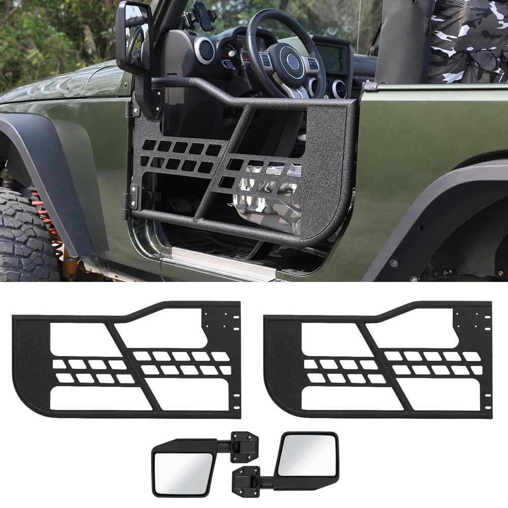 【Perfect Fit】These tube doors are compatible with Jeep 2007-2018 Wrangler JK 2 Door models. w/ mirrors. 【Enhance Off-Road Experience】These tubular doors improve your Wrangler's visibility while adding a stylish touch to your vehicle, so you can enjoy the great outdoors while navigating challenging terrain; 【Built to Last】Made from 1/8" steel sheet and treated with a premium E-coating process, these half doors are durable and offer the strength needed to withstand rugged off-road conditions and excellent corrosion resistance for long-lasting performance; 【Easy Installation】No drilling is required for installation. These doors are engineered to fit factory OE hinges and include installation instructions for straightforward setup and removal; 【Off-Road Use Only】Designed specifically for off-r 2 pc Tubular Tube Doors With 2 Rear Mirror for 2007-2018 Jeep Wrangler JK 2 Door About the item: 【Perfect Fit】These tube doors are compatible with Jeep 2007-2018 Wrangler JK 2 Door models. w/ mirrors. 【Enhance Off-Road Experience】These tubular doors improve your Wrangler's visibility while adding a stylish touch to your vehicle, so you can enjoy the great outdoors while navigating challenging terrain; 【Built to Last】Made from 1/8" steel sheet and treated with a premium E-coating process, these half doors are durable and offer the strength needed to withstand rugged off-road conditions and excellent corrosion resistance for long-lasting performance; 【Easy Installation】No drilling is required for installation. These doors are engineered to fit factory OE hinges and include installation instructions for straightforward setup and removal; 【Off-Road Use Only】Designed specifically for off-road applications, these half doors are not intended to serve as safety restraint devices. Always wear seat belts and adhere to safe driving practices. Highlights at a Glance: - Precision for Wrangler JL Fit - Heavy Duty Steel Frame - Textured Black Powder Coat - Open Air Trail Visibility - Quick Installation - Off Road Style Upgrade Specification: Name: Off road doors Material: Heavy duty Steel Compatibility: for Wrangler JK 2007-2018 (2-Door) Packing List: 2 x Off Road Tubular Trail Doors 2 X Rear Mirrors Payment Delivery details Terms of sales About us Contact us Payment We accept payment either via PayPal or any of the following credit cards; Visa, MasterCard, Discover, and American Express. Delivery details 1. We will delivery out at the handing time when we receive the payment. 2. The delivery time is 3-5 business days to US by usually time.The parcel maybe delay 1-2day of the weekend.Due to the bad weather,Holidays,Hot Season ect.the parcel maybe delay,If you have any problems,mssage us,we will try our best to solve it. 3. We ship to your eBay address. Please make sure your eBay address is correct before you pay. 4. If you want to change the shipping address,message us before our send out. Terms of sales If you are not satisfied with the item for any reason, please do not quick to leave negative/neutral feedback even open request and case without any communication with us. We devote ourselves making EVERY CUSTOMER in 100% Satisfactory and resolve any problem. Thank you for your understanding and recognition,we are always leave positive feedback to all our customers. About Reply: All replies will be sent to your email box, if you do not get response within 24 hours (Sat. & Sun. excluded) please check your eBay My Messages in case that our emails will be filtered automatically by your settings. About us skybridge99 is a brand new store but we are one of North America’s top online suppliers of specialized, high-quality aftermarket online retailers and suppliers, committed to developing new markets. We primarily offers tool sets, auto parts, home goods, etc..With over 20 years of product selection and manufacturing experience, we delivers unparalleled quality, value, service and satisfaction. Our highly-trained, professional staff offer in-depth knowledge and personalized assistance for customers worldwide. Providing our customers with a simple, hassle-free experience with best-in-class customer service is more than a goal. Contact us Any problem please rest assure to contact us by eBay message first. We will reply you as soon as we can. We will deal with it within 24hs on working days. Brand GARVEE MPN Does not apply Item Weight 11.07 lb Color Black Type Tubular Off-Road Door Kit Warranty 5 Year Features Easy Installation Material Steel Placement on Vehicle Left, Right Universal Fitment No Manufacturer Warranty 5 Years Items Included 2 Rearview Mirror