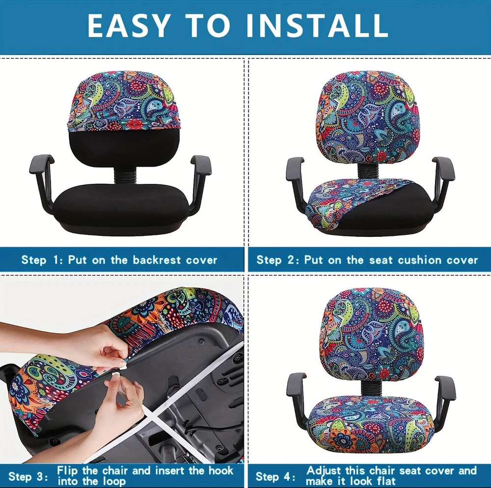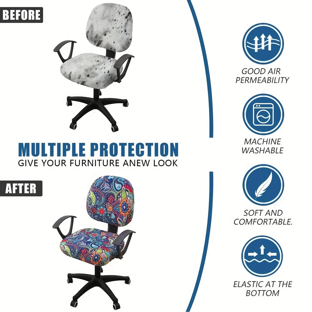 Revitalize your workspace - Economically restore your old office chair and enhance your workspace atmosphere with our stylish desk and chair covers. Excellent protection - Protect your pets, hair, spills and snacks with our office chair protective cover to protect your precious chair from damage. Perfect fit - Our computer chair covers are made of super-stretch fabric and safety buckle system to ensure a tight fit for chairs of all sizes without slipping, providing comfort and breathability. Easy to care for - maintains cleanliness; Our office chair seat covers are machine washable in cold water and do not require bleaching, dry cleaning or ironing. Ideal gift choice - This office chair set is the perfect gift for friends and family, effortlessly upgrading their office space to be stylish and functional.