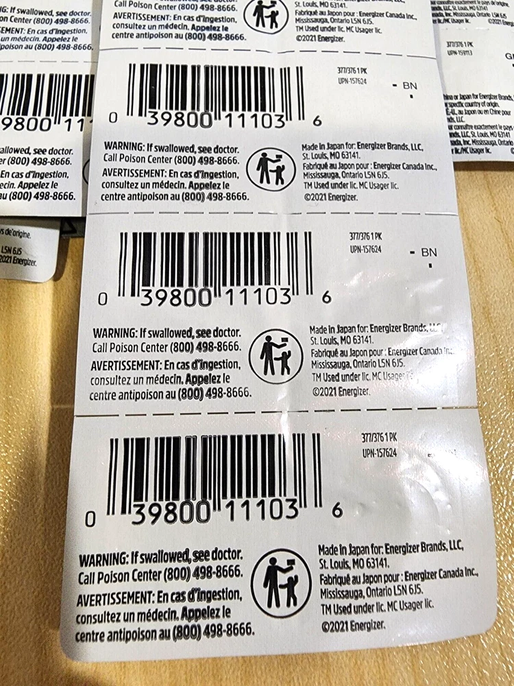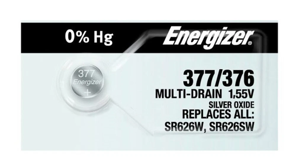 Battery Type: Silver-Oxide Application: Low Drain Devices Product Type: Battery gtin13: 0039800111036 Battery Size: SR626 Type: Coin/Button Cell Country/Region of Manufacture: Japan Compatible batteries: Duracell, Murata, Maxell, Renata, Quantity: 2 MPN: 377376SR626SWSR626W Brand: Energizer Custom Bundle: No Voltage: 1.55 V Model: 377 / 376 UPC: 0039800111036 Chemical Composition: Silver Oxide Coin/Button Cell Sub-Type: LR626/LR66