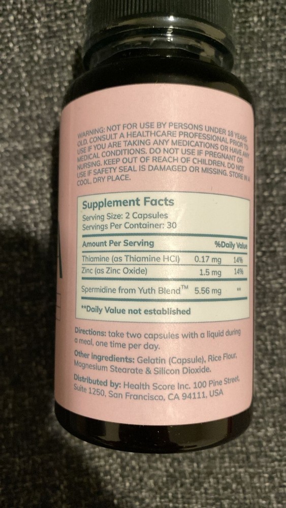 2 x NOVA Ultimate Cell Renewal Spermidine Supplements – 60 Capsules – New, Sealed & 100% Genuine – Exp. 12/2027 THE ANTI-AGING POWERHOUSE: Unlock the secret to longevity! By promoting cellular autophagy, our spermidine supplement supports a vibrant, youthful you. Bio-hacking is easy with Nova’s anti-aging spermidine supplements. EXPERIENCE THE NOVA DIFFERENCE: Nova’s unique formula features 99% active ingredients. Each serving contains Spermidine (3 mg) (extracted from organic wheat germ), Thiamine (0.17 mg), and Zinc (1.5 mg). These powerful wellness tablets help extend cellular lifespan in the liver, brain, and muscle tissue. PURE INGREDIENTS ONLY: Nova Spermidine supplements for men and women are non-GMO, lactose-free, prescription-free, and silicone-free. With natural spermidine powder, we rejuvenate your body without additives! Contains 60 capsules, 30 servings (2 capsules per day). CELL RENEWAL FOR A NEW YOU: Say goodbye to thinning hair, brittle nails, and dull skin. From the inside out, Nova’s vegan multivitamin for ultimate cell renewal can brighten and enhance your appearance. Discover that age is just a number. PROUDLY MADE IN THE USA: Manufactured under the highest standards. Nova is committed to harnessing the power of autophagy. Our supplement is carefully formulated to support and optimize your body’s natural cellular cleansing process, making it your ally in the pursuit of longevity.